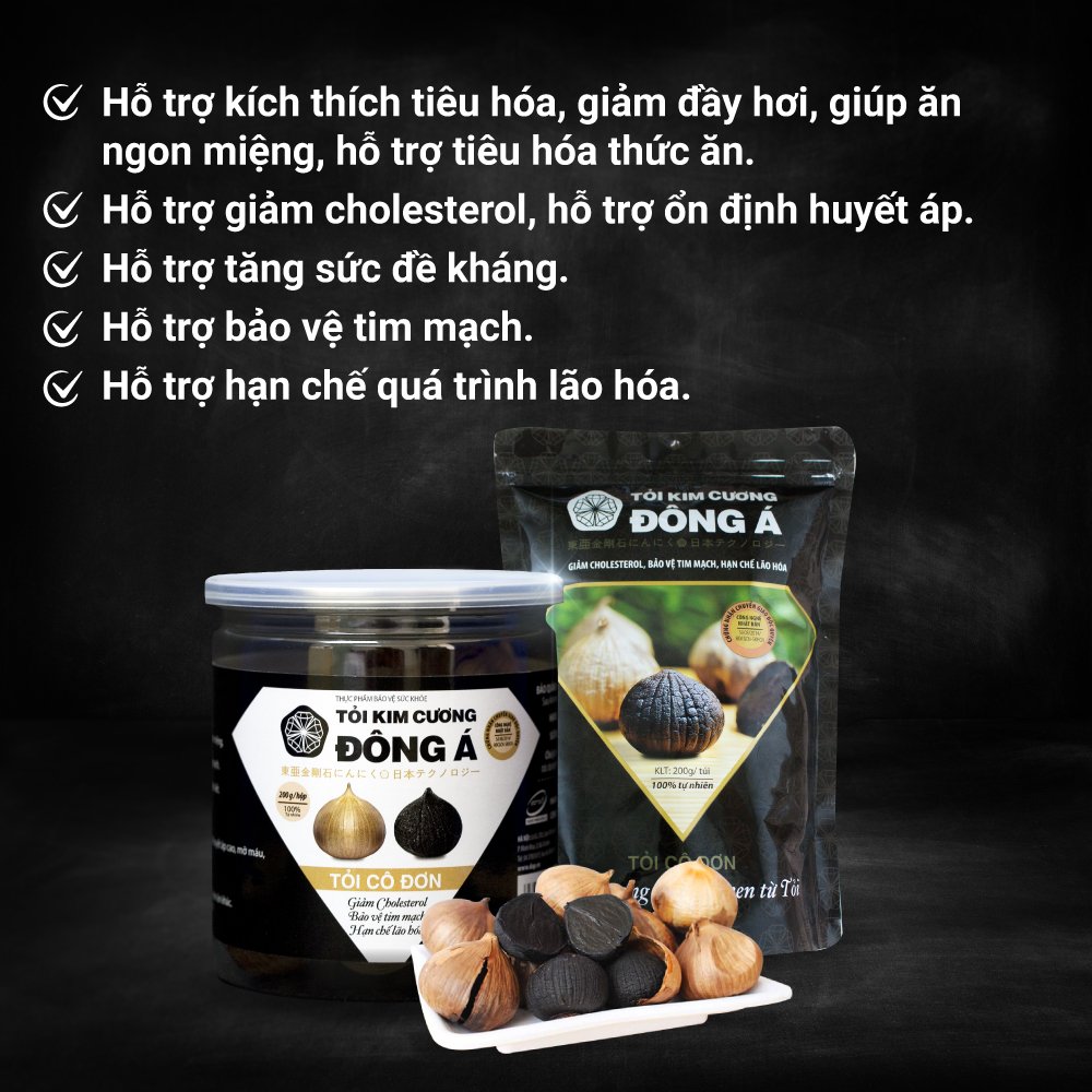 Tỏi Kim Cương Đông Á - Tỏi đen cô đơn lên men trong 2000 giờ theo công nghệ Nhật Bản