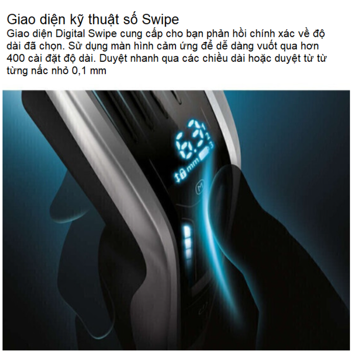- Màn hình kỹ thuật số của máy cho bạn biết thông tin về chiều dài của cữ lược đang sử dụng, giúp bạn điều chỉnh được hơn 400 độ dài khác nhau của cữ lược, bạn có thể thay đổi chiều dài ở mức thấp nhất là 0,1 mm