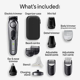 Mua tại Tiktok- Bộ sản phẩm Braun 11 in 1 này đáp ứng mọi nhu cầu của bạn: cắt tỉa, chi tiết, làm mờ, chăm sóc cơ thể, cạo râu chính xác và cắt tỉa lông tai và mũi của bạn TÍNH LINH HOẠT KHÔNG GIỚI HẠN, ĐỘ CHÍNH XÁC CHUYÊN NGHIỆP: Bánh xe chính xác có 40 cài đặt độ dài trong các bước 0,02” và lược chải râu và tóc có thể gắn được DỄ DÀNG, NHANH CHÓNG, NHẸ NHÀNG: ProBlade hoạt động hiệu quả trong mọi cú đánh, ngay cả ở những khu vực khó khăn để có kết quả hoàn thiện tuyệt vời và chải chuốt toàn thân thoải mái Chăm sóc râu, cơ thể và tóc DỄ DÀNG: mang lại kết quả đáng kinh ngạc cho mọi loại tóc, độ dài hoặc độ dày bằng công nghệ AutoSense cải tiến của Braun ĐƯỢC XÂY DỰNG ĐỂ CUỐI CÙNG: chiếc tông đơ dành cho nam giới này có pin Li-Ion mạnh mẽ với thời gian chạy không dây 100 phút, lưỡi dao sắc bén suốt đời, đế sạc và hộp đựng cao cấp để bảo quản