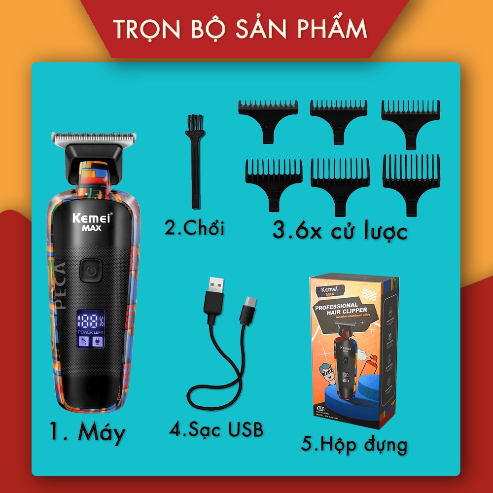 ✨Tông đơ chấn viền cao cấp Kemei KM-MAX5090 phiên bản trend màn hình LCD hiển thị sạc nhanh USB có thể cắt tóc, cạo đầu, fade trắng chân tóc, bấm viền