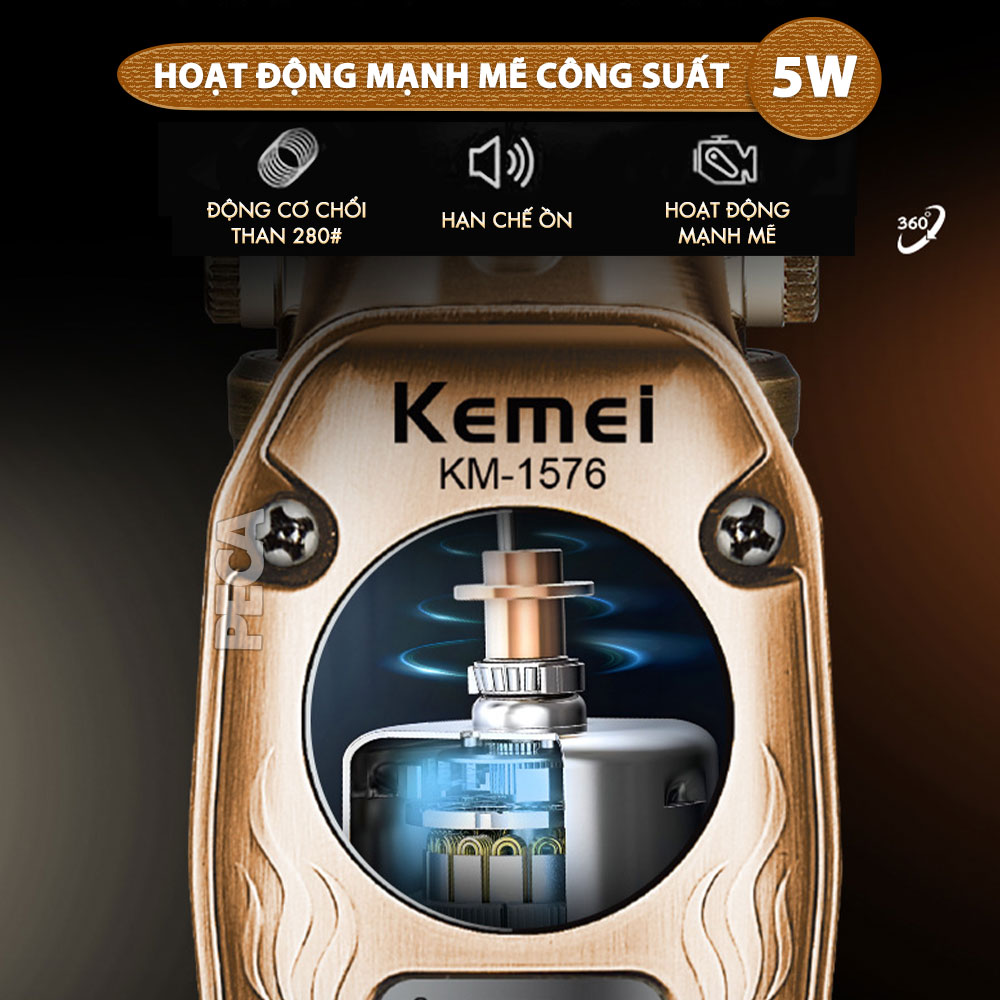 ✨Tông đơ chấn viền Kemei KM-1576 lưỡi cắt mạ carbon cao cấp công suất 5W, điều chỉnh 3 mức tốc độ - Chính hãng