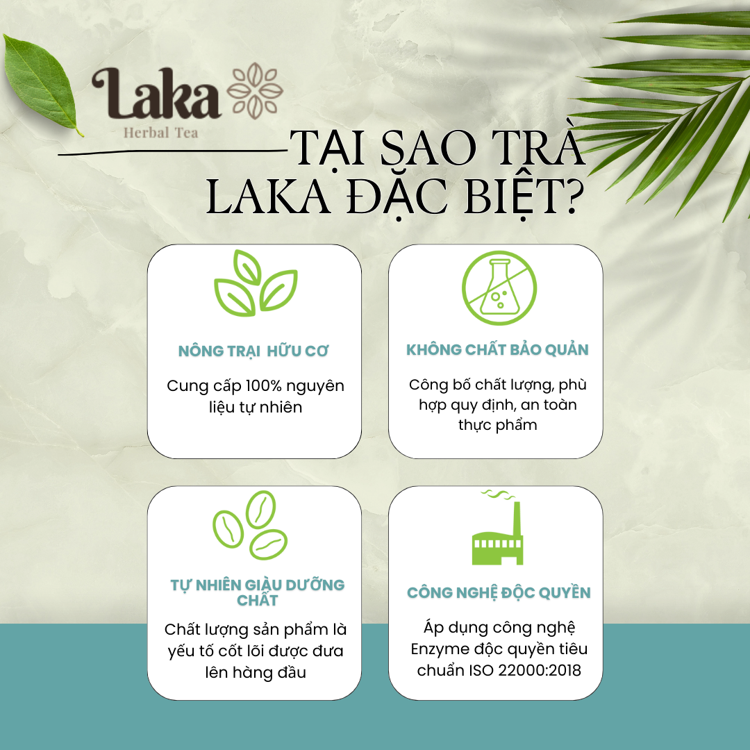 LAKA HERBAL TEA áp dụng công nghệ ủ men lactobacillus có định hướng: khử toàn bộ lợi khuẩn và hại khuẩn trong quả cà-phê khô, sau đó chỉ đưa vào lợi khuẩn lactobacillus sống và thuần chủng. Đây là lợi khuẩn được khoa học chứng minh có nhiều lợi ích cho hệ tiêu hoá, hỗ trợ giảm cân và giảm mỡ bụng hiệu quả.