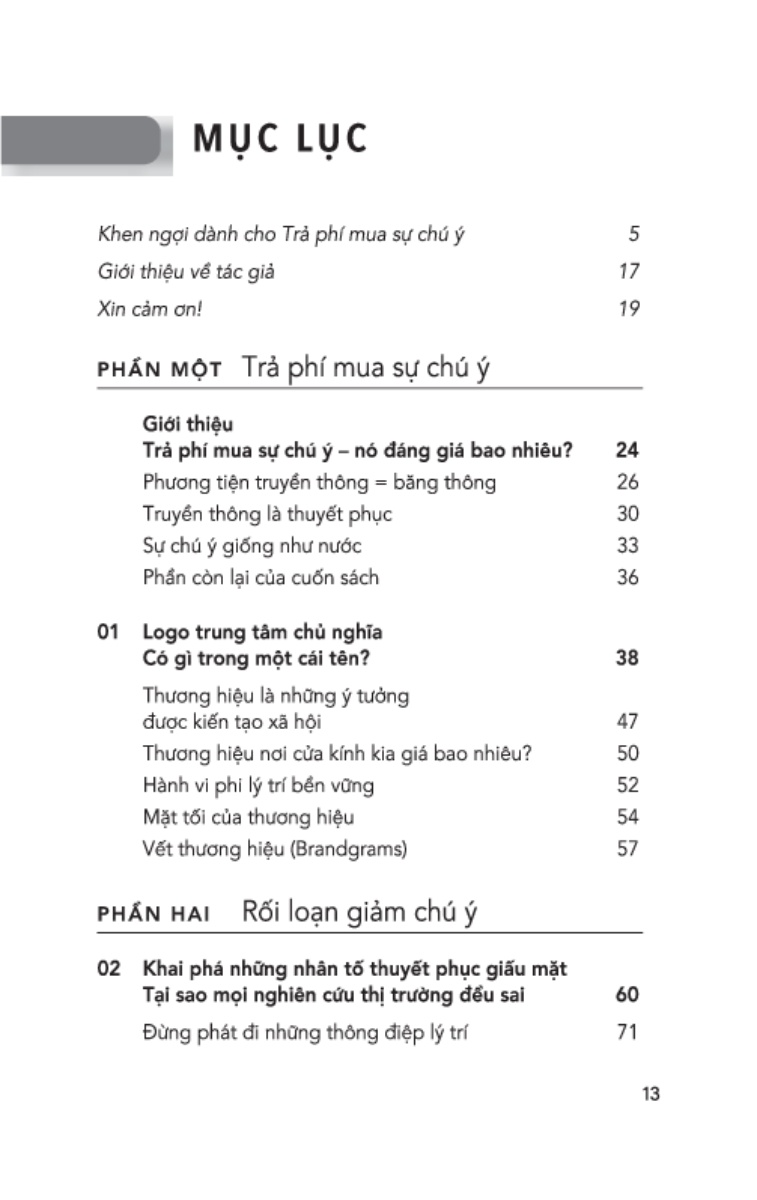 Trả phí mua sự chú ý khám phá cách những ý tưởng làm lay động tâm can con người, cũng như những thay đổi cần thiết trong quảng cáo để có thể theo kịp bối cảnh truyền thông hiện đại. Cuốn sách cũng bao gồm nhiều ví dụ thực tế từ các chiến dịch lớn của những công ty như S, Redbull và HP, cùng những công cụ và biểu mẫu marketing có tính ứng dụng cao .