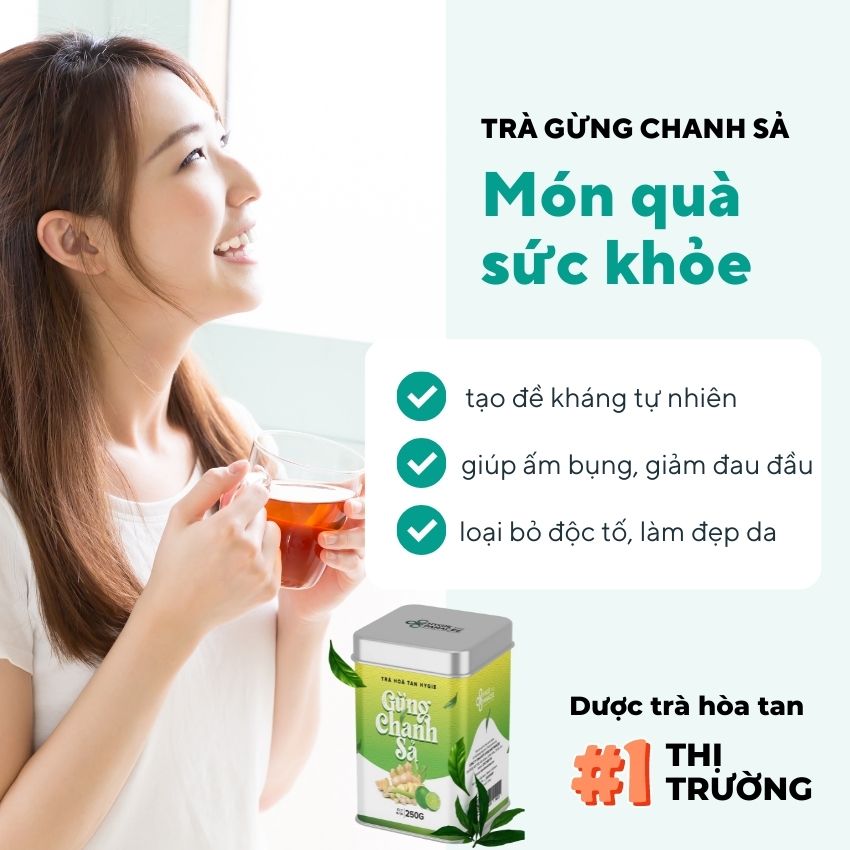 TRÀ GỪNG CHANH SẢ Trà Gừng Chanh Sả giúp hỗ trợ phòng ngừa bệnh cảm cúm, giúp ấm bụng, giảm đau đầu, đau cơ, tăng cường miễn dịch, tăng sức đề kháng cho cơ