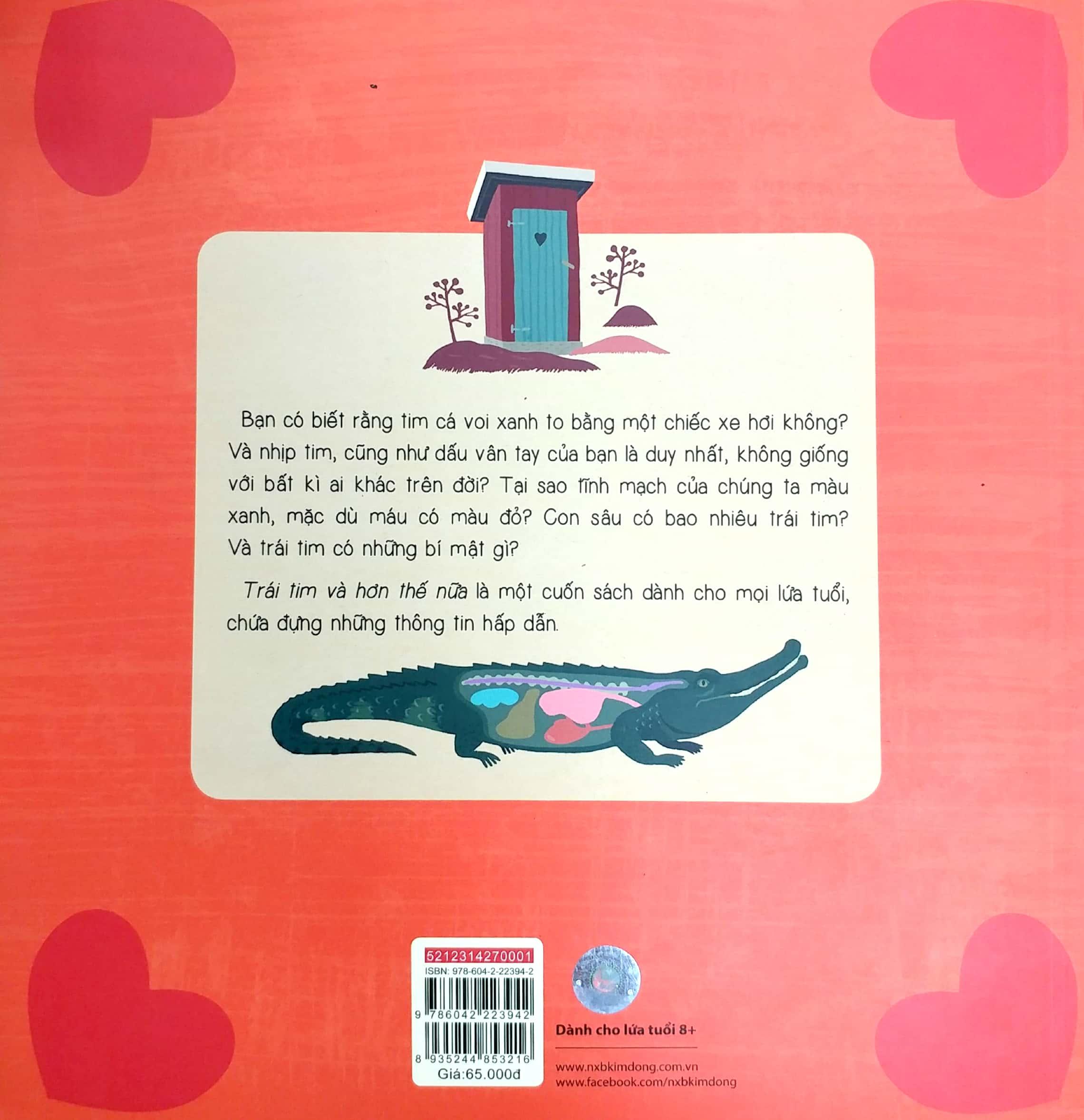 Bạn có biết rằng tim cá voi xanh to bằng một chiếc xe hơi không? Và nhịp tim, cũng như dấu vân tay của bạn là duy nhất, không giống với bất kì ai khác trên đời? Tại sao tĩnh mạch của chúng ta màu xanh, mặc dù máu có màu đỏ? Con sâu có bao nhiêu trái tim? Và trái tim có những bí mật gì? Trái tim và hơn thế nữa là một cuốn sách dành cho mọi lứa tuổi, chứa đựng những thông tin hấp dẫn.