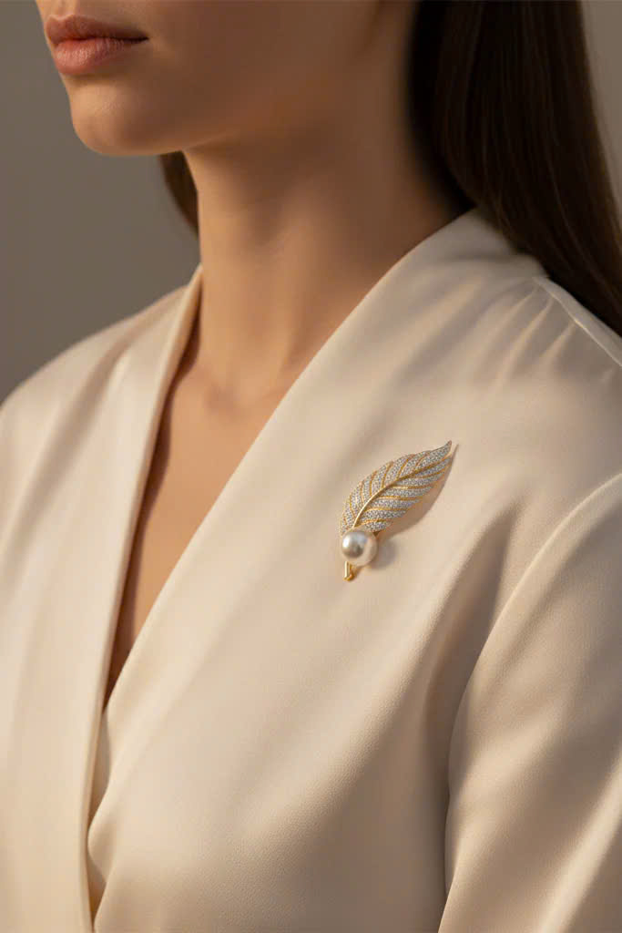 ✨Trâm Cài Áo Vest, Áo Dài Đính Ngọc Trai Baroque Hình Lông Vũ thời trang thiết kế Hity ACC404
