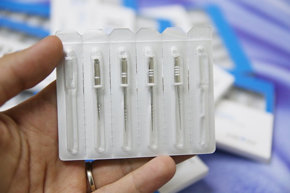 CÓ FILE NỘI NHA RE ENDO, NỘI NHA LẠI KHÔNG CÒN LÀ NỖI LO! ️ Loại bỏ gutta cũ trong nội nha lại khiến Bác sĩ mất nhiều thời gian và đặc tính cứng của gutta cùng lớp xi măng trám bít gây khó khăn trong quá trình lấy chúng ra khỏi ống tủy. Giờ đây việc này sẽ dễ dàng hơn nhiều với bộ trâm file hỗ trợ điều trị nội nha lại Re Endo của EndoStar hãng nội nha nổi tiếng từ Ba Lan. Re Endo gồm 4 cây file với thiết kế đặc biệt: Với đường cắt rất sắc nên giúp loại bỏ tốt gutta Khả năng xuyên phá mạnh nên khuyến cáo dùng với chuẩn tốc độ quay 150 - 300 vòng/phút lấy gutta dễ dàng. Lấy toàn bộ gutta và chất trám bít ra khỏi ống tủy Re Endo cùng bạn trở thành chuyên gia nội nha hàng đầu chuyên nghiệp hơn, thành công hơn. Quy cách đóng gói: 4 cây/hộp