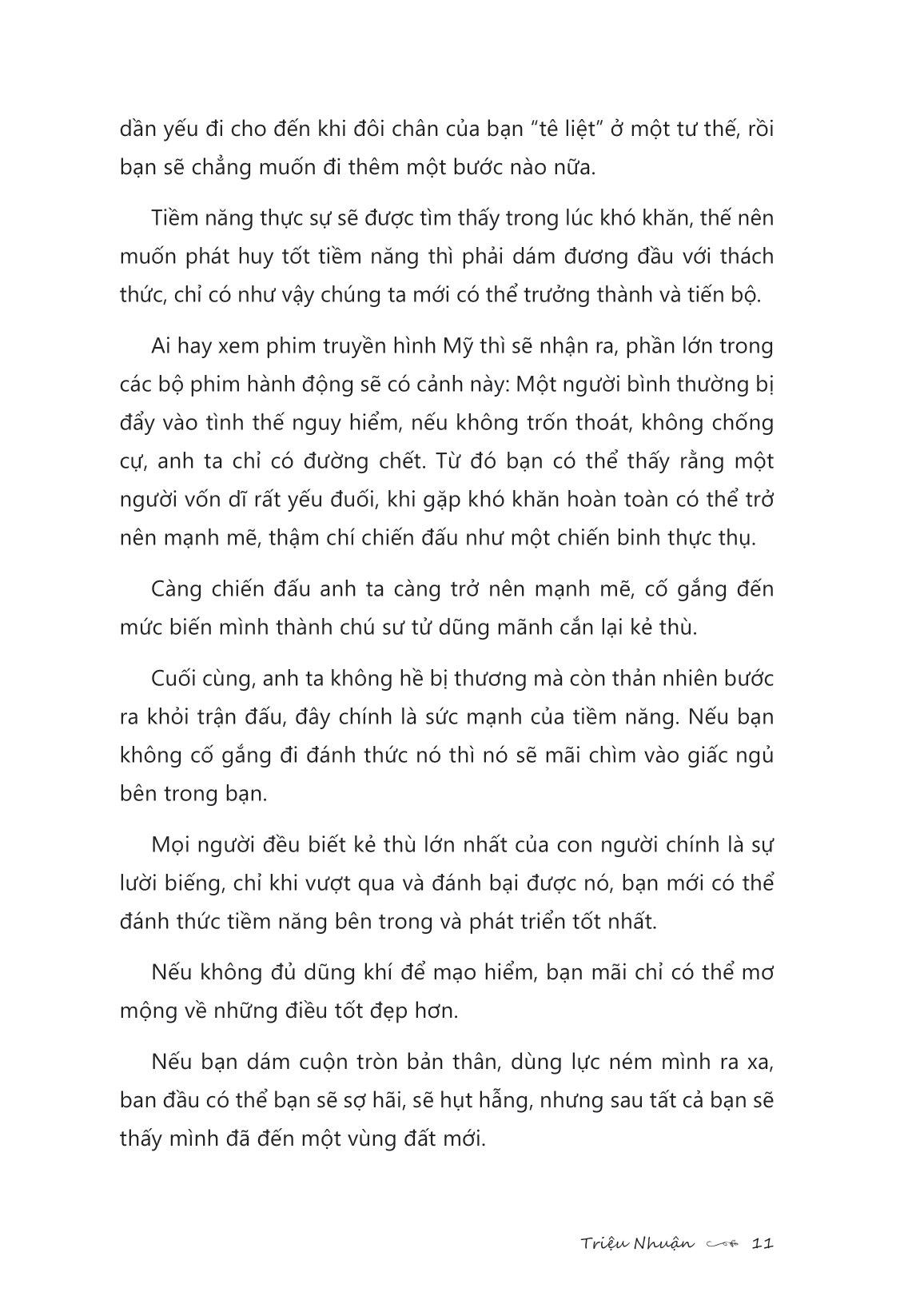 Trận Chiến 10 Năm Trước, Cuộc Đời 10 Năm Sau “Nếu chúng ta cho rằng bình phàm là đáng quý, ta sẽ hài lòng với bản thân của hiện tại, lựa chọn những điều dễ dàng, sống cho qua ngày mà quên mất trên đời có những người không màng tất cả để sống đời huy hoàng rực rỡ.” Các bạn trẻ, tương lai của các bạn đang được xây dựng và tích lũy dựa trên những quyết tâm ở ngay giây phút này. Vậy nên tuổi trẻ đừng chọn an nhàn, đừng tính toán thiệt hơn, đừng trì hoãn các mục tiêu, đừng nhụt chí sau thất bại. Trận chiến 10 năm trước chính là cuộc đời của bạn 10 năm sau!