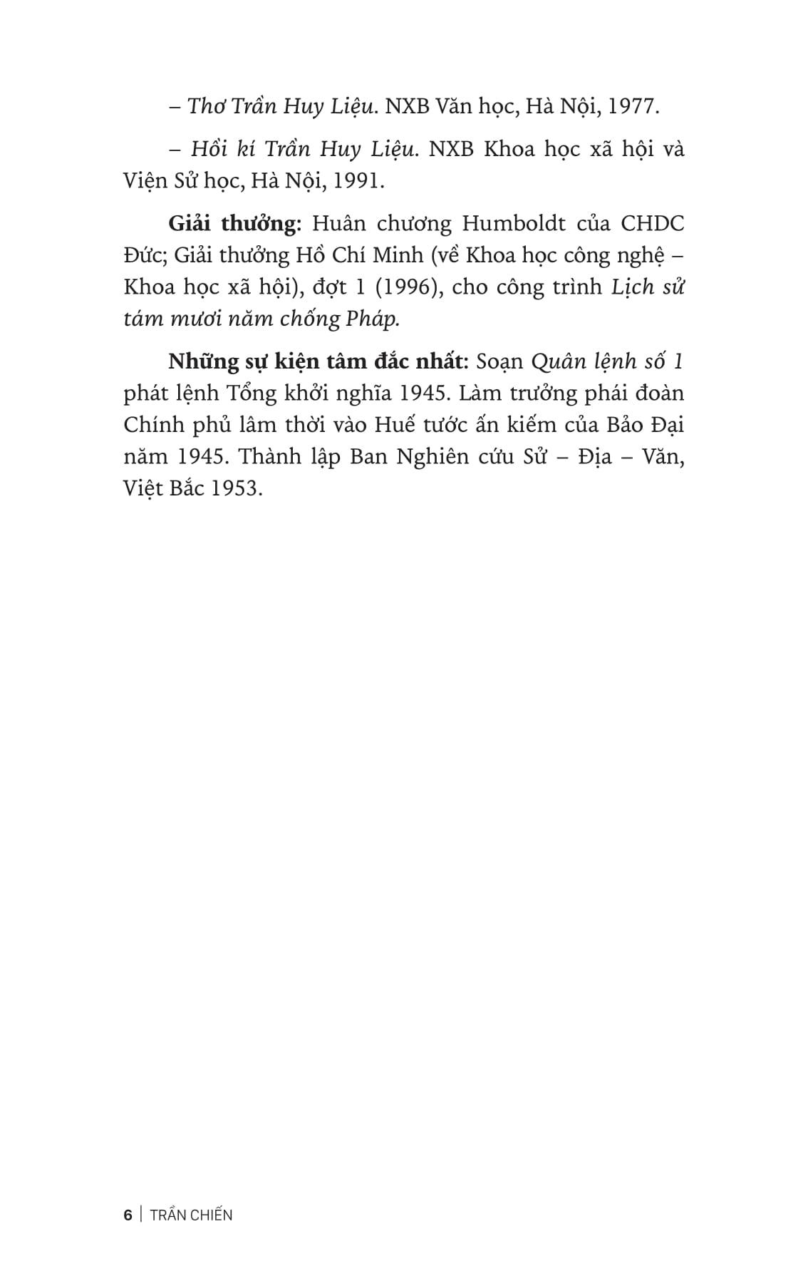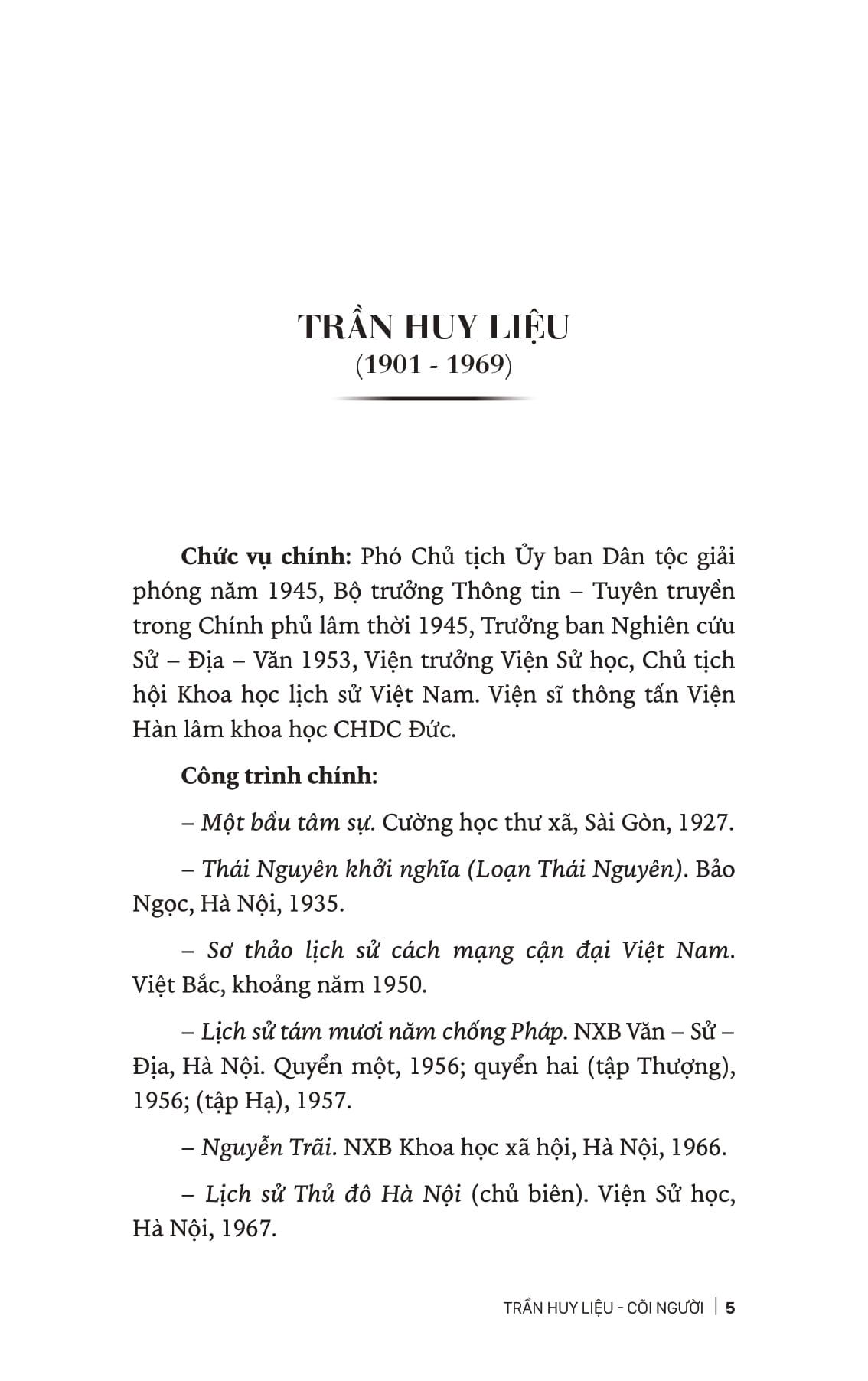 “Trần Huy Liệu là một con người “đa hệ”. Về mặt văn hoá, bắt đầu từ Nho giáo, ông chuyển dần sang tân học. Về “nhân thân xã hội”, trước sau ông là người dân tộc trong căn cốt, dù là trong phong trào Thanh niên, Quốc dân đảng hay là người Cộng sản. Nghề nghiệp thì chuyển từ làm báo sang nhà tuyên truyền, gần cuối đời đi viết sử, tức là chỉ có thể dính đến chữ nghĩa. Sinh năm 1901, ông thường nói (nửa) đùa m.ình là con người của thế kỉ XX. Dầu sao, đời ông gắn với những trào lưu chính yếu nhất của nước Việt trong 100 năm đó: Nho tàn, Tây học, chủ nghĩa Tam dân, hệ tư tưởng Cộng sản… Đây là những điều tôi muốn phản ánh trong sách này.”