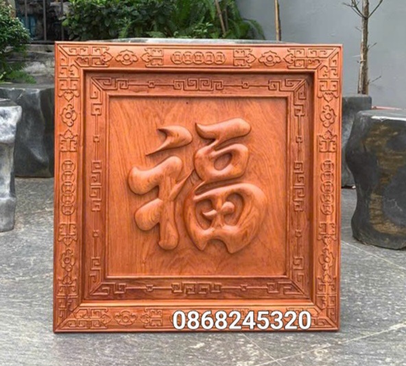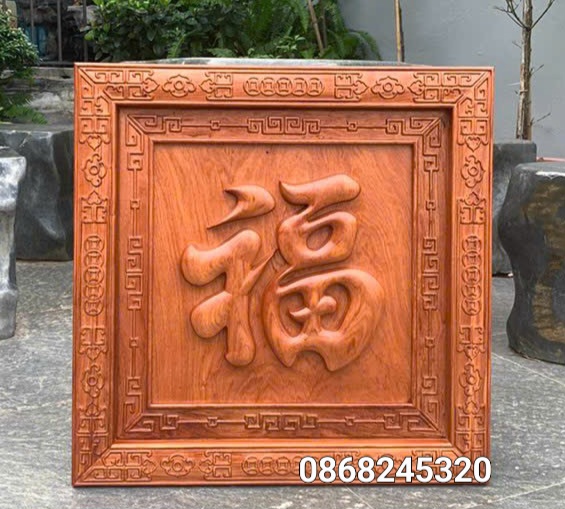 _ Tranh chữ phúc được làm bằng chất liệu gỗ gõ tự nhiên 100% _ Kt mặt vuông 61×61×4cm _ Tranh được khắc nổi tỉ mỉ ,tinh xảo kỳ công .Từ những người thợ giàu