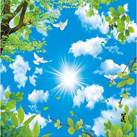 Tranh 3d dán tường trần nhà cảnh trời mây phòng khách