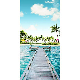 ✨Tranh dán tường 3D cây cầu khổ dọc cảnh biển - con đường- vải lụa kim sa
