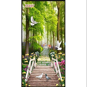 ✨Tranh dán tường 3d Con đường khổ dọc- chất liệu vải lụa- Nhận in theo kích thước yêu cầu