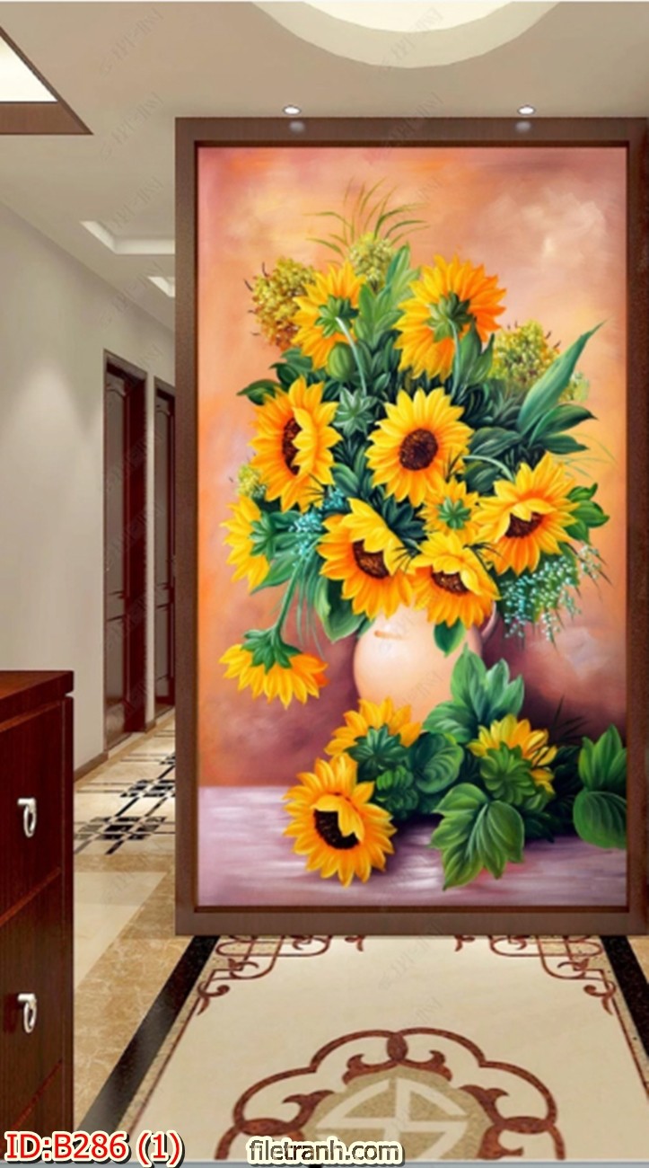 Tranh dán tường 3d hoa hướng dương Ưu điểm của tranh dán tường 3d: Hiện nay, đời sống vật chất ngày càng được nâng cao cùng với đó là nhu cầu về tinh thần, về