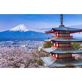 Tranh dán tường 3D cảnh núi phú sĩ Nhật Bản
