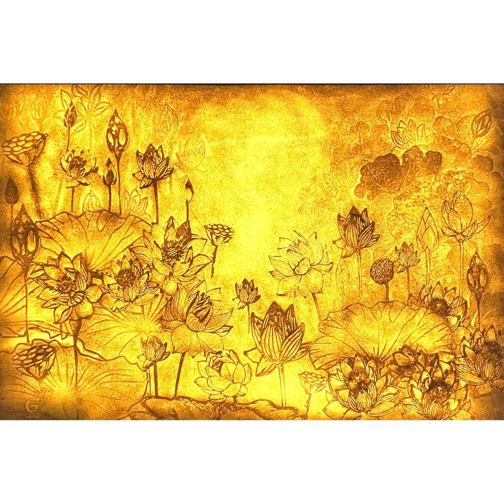 tranh 3d vải lụa kim sa kim tuyến dán tường, kính 0776707677