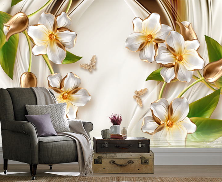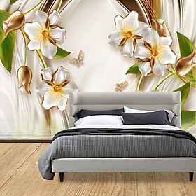✨Tranh dán tường 3d, Tranh hoa 3D, tranh lụa 3D dán tường,tranh dán tường phòng khách 3D PVP-42845A, TRANH HOA 3D DÁN TƯỜNG CAO CẤP