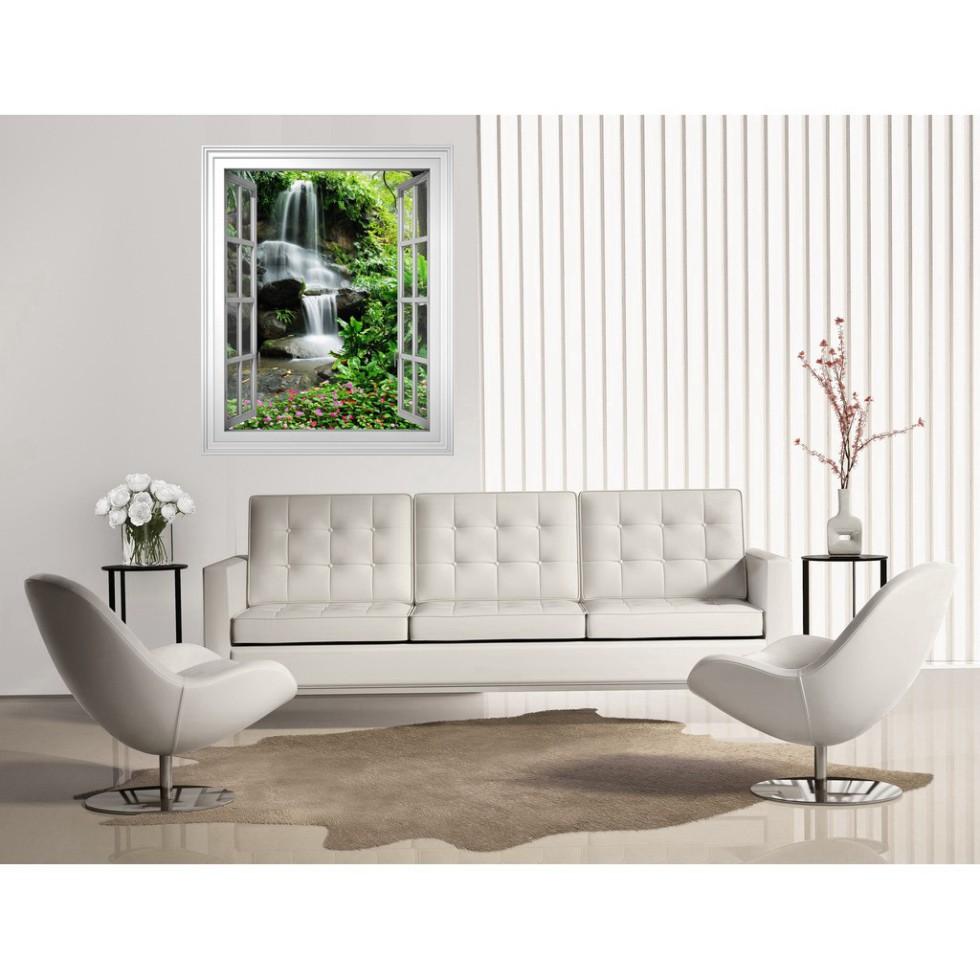 ✨Tranh dán tường cửa sổ 3D cảnh thác nước