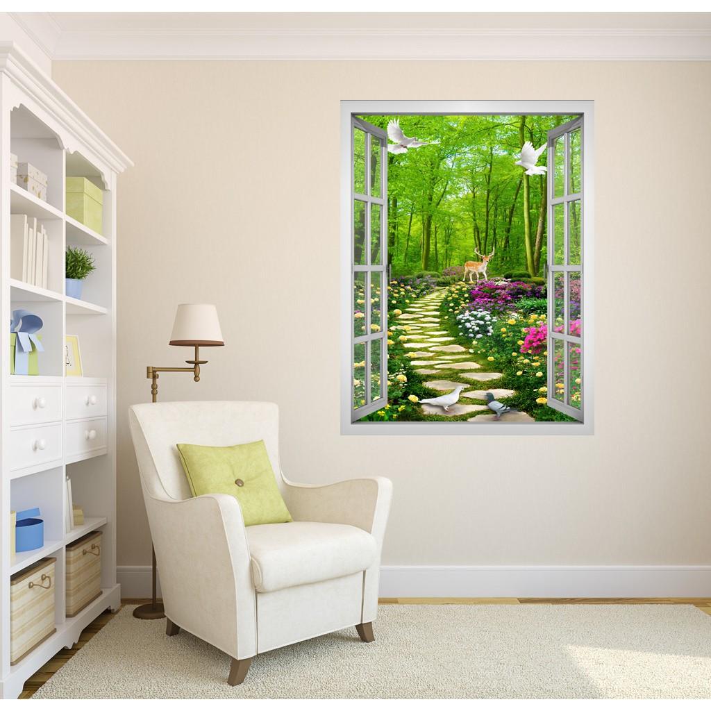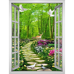 Tranh dán tường 3D cửa sổ phong cảnh sắc nét