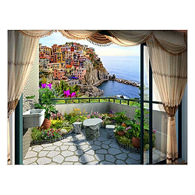 Tranh dán tường 3D cửa sổ phong cảnh sắc nét