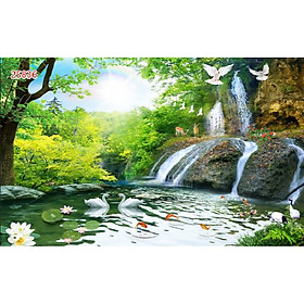 Tranh dán tường 3D decal sơn thuỷ hữu tình dễ dán