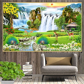 Tranh dán tường 3D sơn thuỷ hữu tình mẫu đẹp