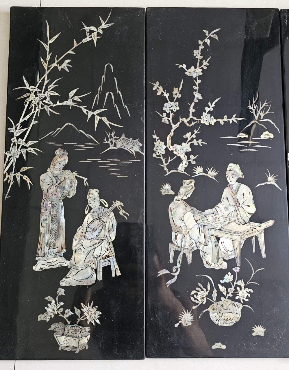 ✨Tranh sơn mài 4 tấm CẦM KÌ THI HỌA, sơn mài xưa, cẩn ốc chìm đẹp 50x80 cm