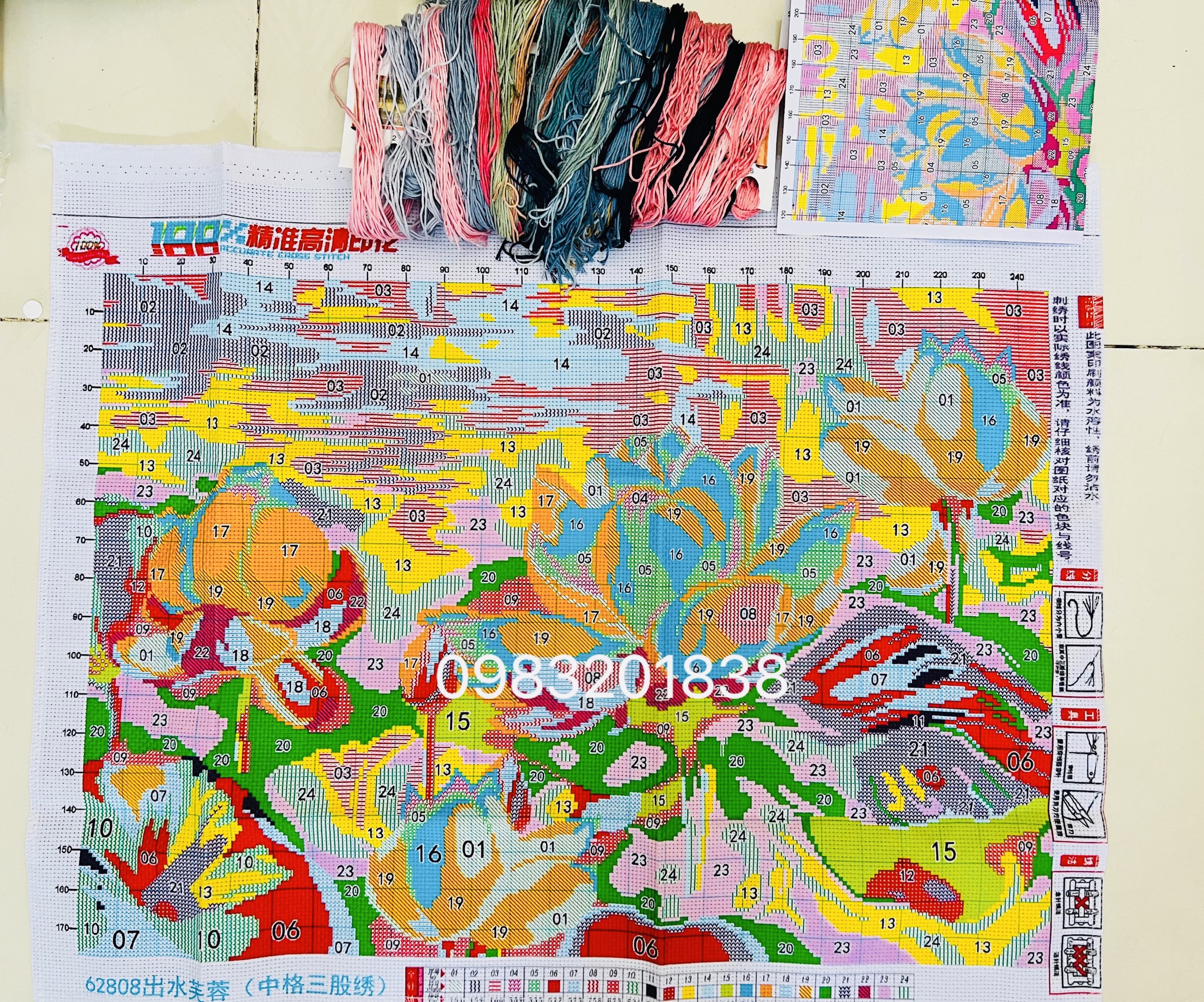 Tên tranh: Tranh thêu kín chữ thập Hoa sen 62808
