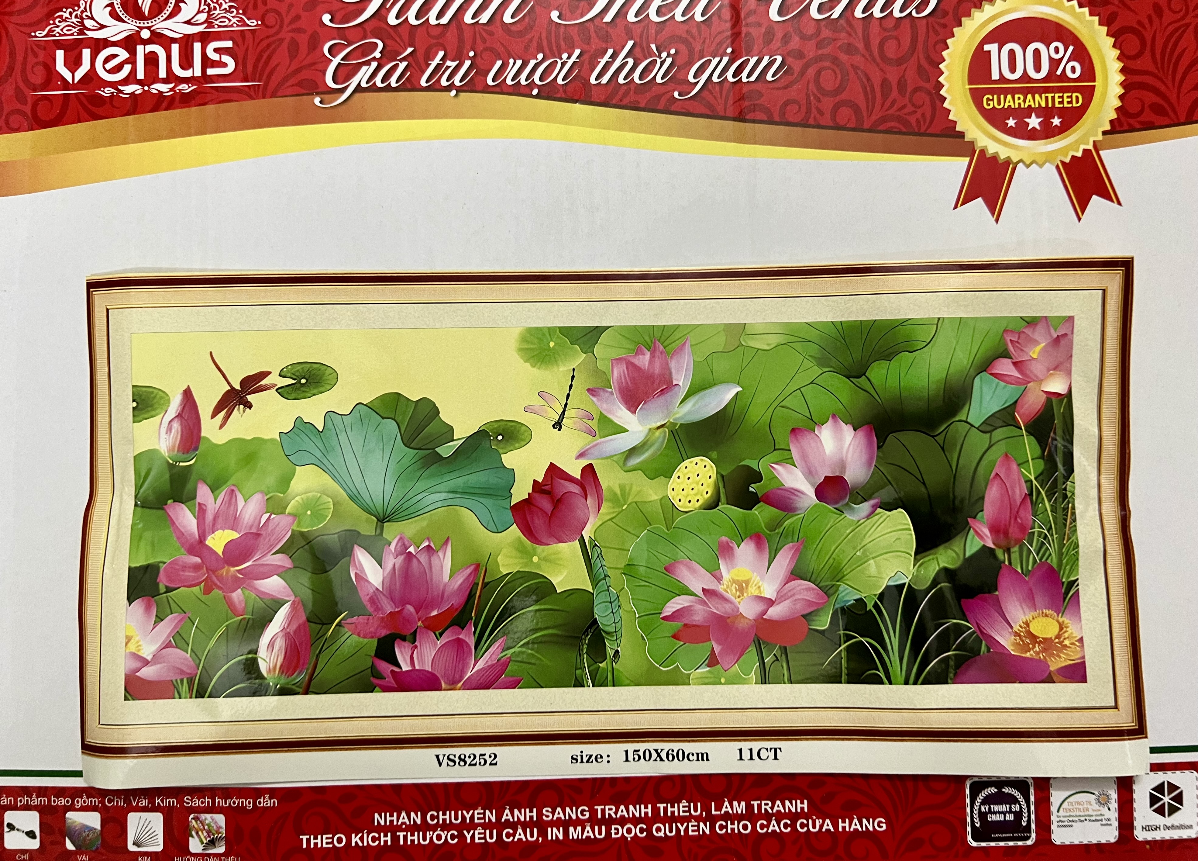 Sản phẩm này là tranh của hãng Venus phôi đẹp, vải dày, chỉ tốt. Vị trí khách cần thêu trên tranh: thêu kín bức tranh Kích thước: (150 x 60 cm) Sản phẩm tranh thêu