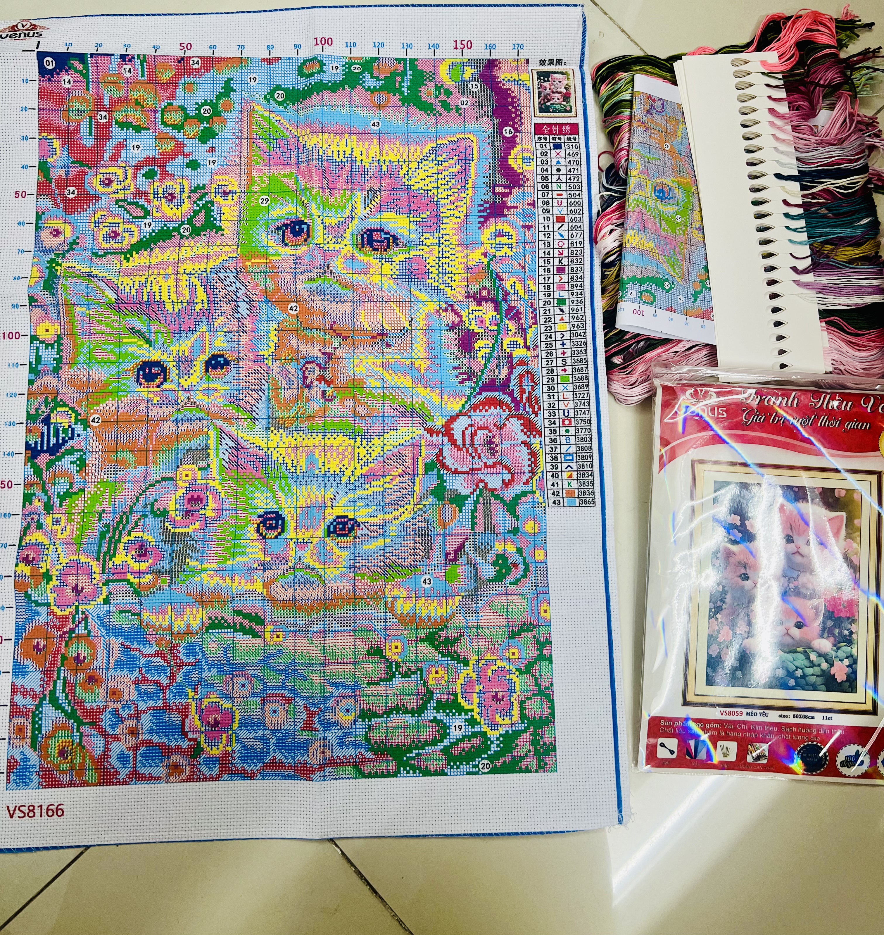 ✨Tranh thêu kín mèo dễ thương vs8059, kích thước 50 x 68 cm