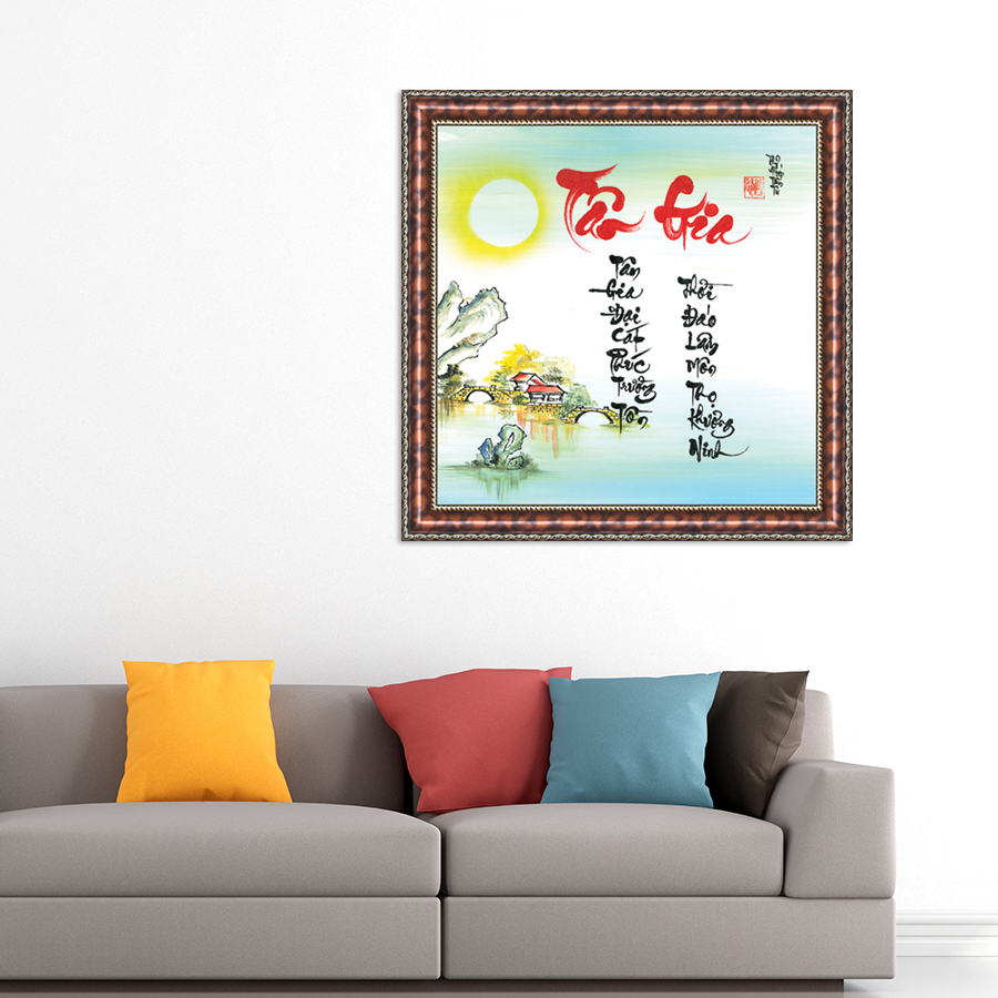- Sản phẩm được vẽ bằng tay hoàn hảo từng tác phẩm, chữ được thể hiện theo phong cách thư pháp cổ điển, từng đường nét nhấn nhá có lực và rõ ràng kết hợp hình ảnh tinh tế thể hiện nét đẹp thẩm mỹ cho toàn bộ bức tranh.