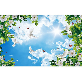 Tranh dán Trần nhà 3d cảnh trời mây đẹp tự nhiên