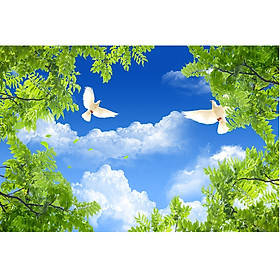 ✨Tranh trần nhà 3D bầu trời lá xanh 7 TN56