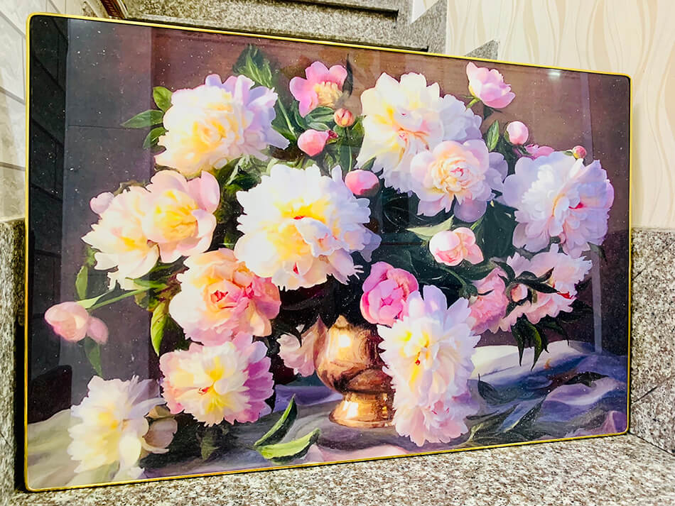 Sản phẩm cao cấp, bề mặt tranh bóng mịn, sáng đẹp có thể lau chùi dễ dàng được tích hợp lớp viền xung quanh bức tranh tạo độ an toàn ,giảm hư hại khi rơi rớt, hiệu ứng hình ảnh sâu, sắc nét tạo nên sự sang trọng cho không gian, chống ẩm mốc, mối mọt và cũng như có độ bền lâu theo thời gian.