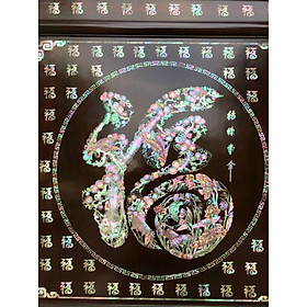 _ Tranh treo tường chữ bách phúc được khảm xà cừ làm bằng chất liệu ốc biển .Kết hợp với lền gỗ gụ tự nhiên 100% ,Tranh được nhuộm mầu đánh bét ni làm mầu