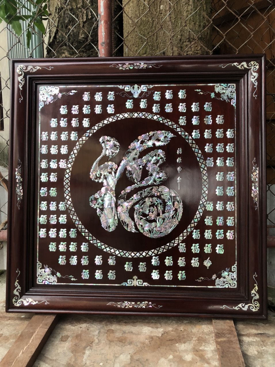 ✨Tranh treo tường gỗ gụ khảm ốc xà cừ chữ bách phúc kt 81×81×4cm