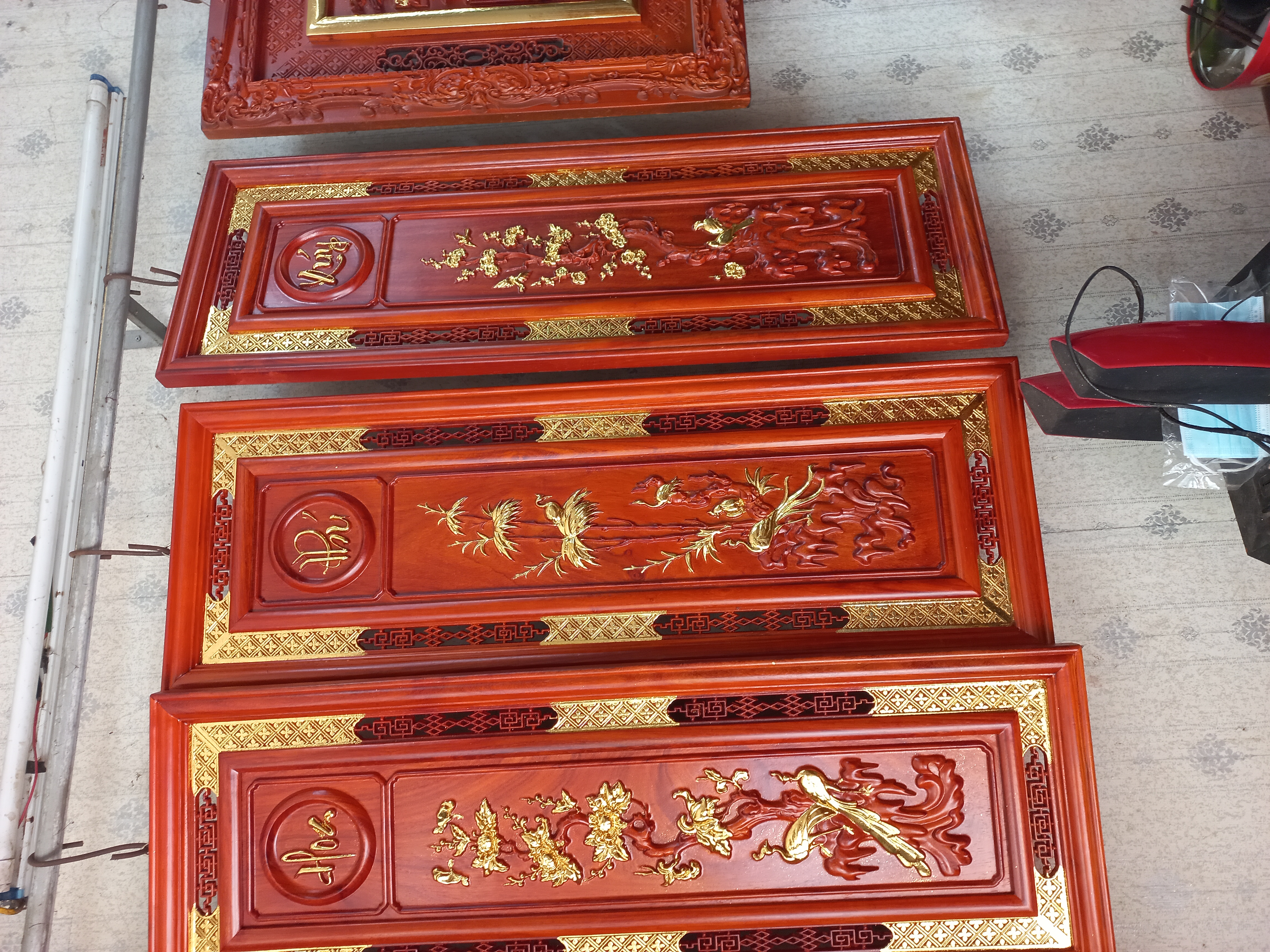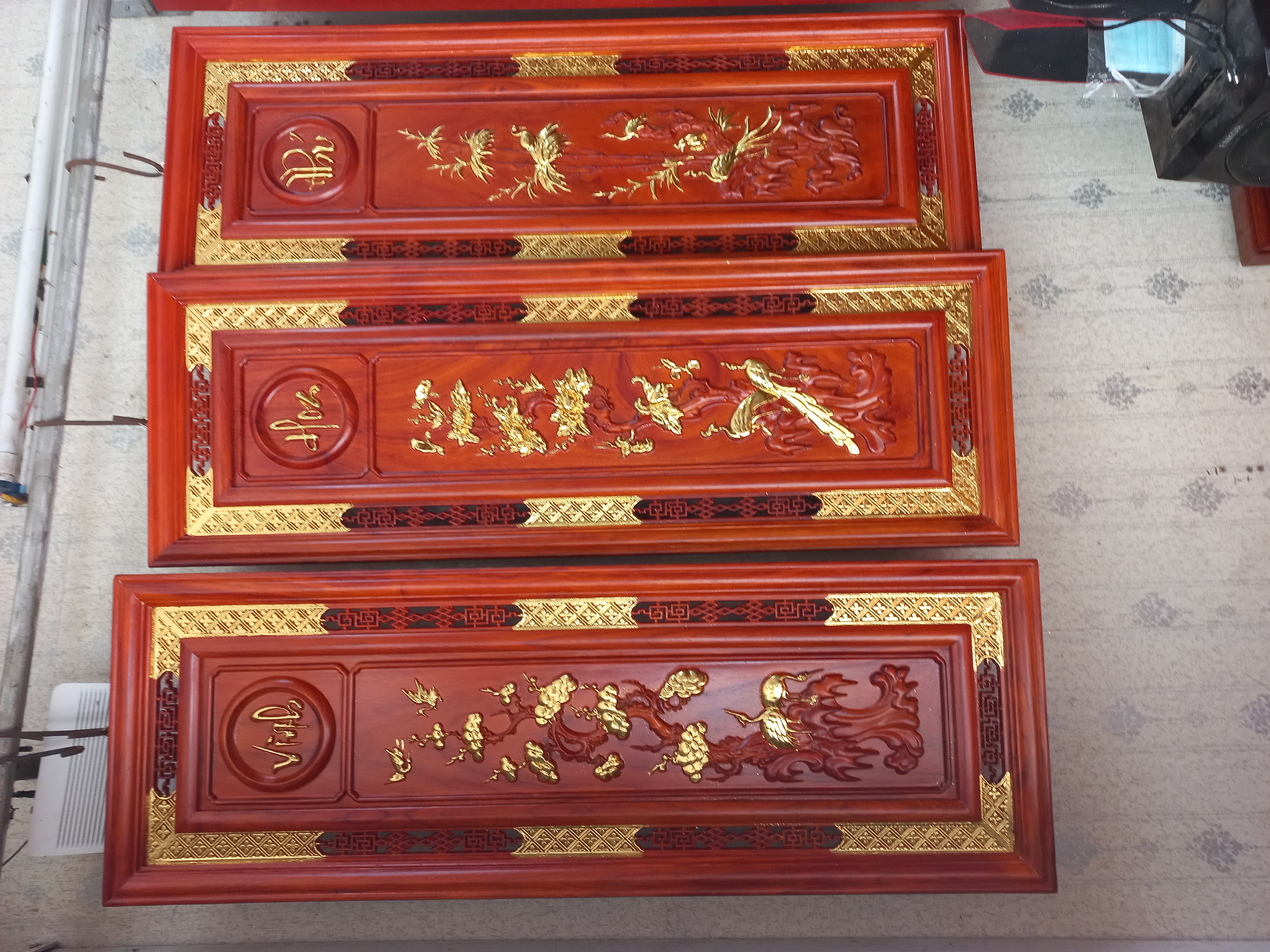 _Combo Tranh câu đối cha mẹ và tranh chữ 3 tấm phúc lộc thọ được làm bằng gỗ hương đỏ tự nhiên 100% Và được sơn pu dát vàng cao cấp _ Kích thước tranh