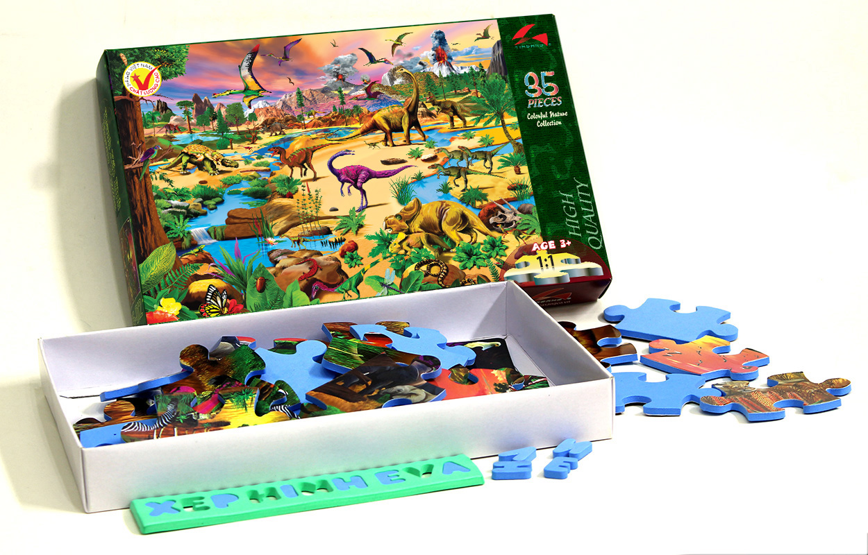 Tranh xếp hình Tia Sáng EVA 035 mảnh - Thế Hệ Khủng long Cuối Cùng - được in trên chất liệu xốp EVA và giấy cao cấp, mảnh cắt sắc nét, màu sắc rực rỡ.