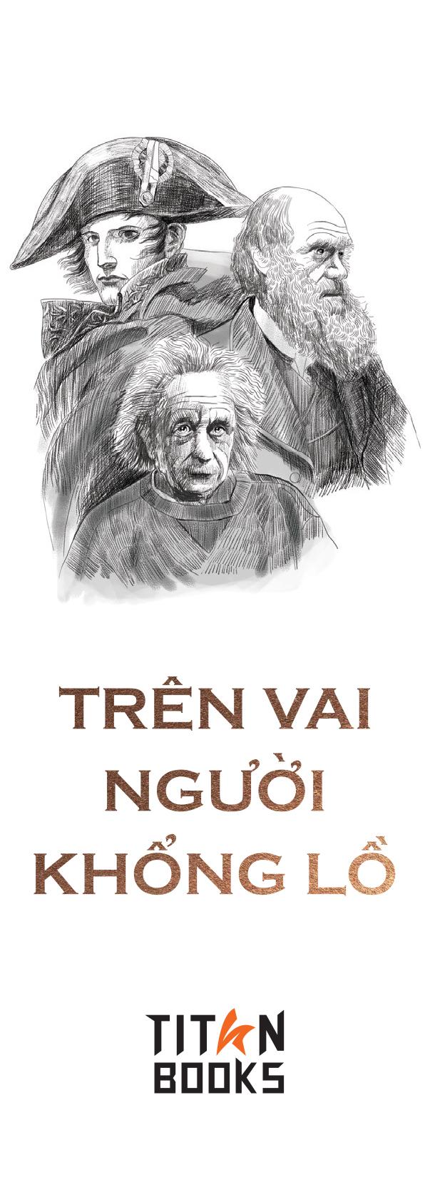 Trên Vai Người Khổng Lồ - Bài Học Từ Những Thiên Tài Vĩ Đại Nhất Lịch Sử Để Khác Biệt Và Thành Công Bạn có thể không phải thiên tài, nhưng có thể học cách tư duy và sáng tạo như một thiên tài. Bạn có thể không phải gã khổng lồ, nhưng có thể đứng trên vai người khổng lồ để nhìn xa hơn và đi nhanh hơn. Trong cuốn sáchTrên vai người khổng lồ - Bài học từ những thiên tài vĩ đại nhất lịch sử để khác biệt và thành công, tác giả Peter Hollins sẽ cho bạn nhìn xuyên qua thời gian và không gian, chứng khiến các dấu mốc cuộc đời của nhiều nhà tư tưởng vĩ đại như Albert Einstein, Socrates, Charles Darwin, Abraham Lincoln,... Từ đó khám phá những đặc điểm đặc trưng và khác biệt trong tư duy khiến họ trở thành những thiên tài bậc nhất, khai thác các phương pháp và kĩ năng độc đáo mà chúng ta có thể tích lũy và học tập. Còn gì kì diệu hơn là khám phá những bộ óc tuyệt vời nhất của những thế kỷ đã trôi qua và áp dụng vào con đường đến thành công của chính m.ình. Giờ thì bạn đã sẵn sàng trèo lên cỗ máy du hành thời gian của Peter Hollins chưa?