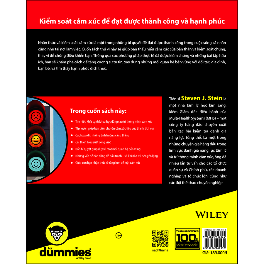 Trí thông minh cảm xúc chỉ sự thông minh trên phương diện tình cảm. Nó bao gồm khả năng nhận biết cảm xúc của mình cũng như của người khác, thấu hiểu những cảm xúc ấy và kiểm soát được chúng. Trong nhiều năm, thậm chí nhiều thập kỷ, các nhà tâm lý học đã khám phá ra rất nhiều khái niệm về trí thông minh cảm xúc. Tuy nhiên, những kiến thức ấy lại tồn tại rời rạc mà không được tổng hợp và hệ thống hóa. Chỉ đến năm 1989, khi hai nhà tâm lý học – John (Jack) Mayer của Đại học New Hampshire và Peter Salovey của Đại học Yale – cho ra đời một lý thuyết nhìn nhận cả trí thông minh và cảm xúc trên cùng một hệ quy chiếu, khái niệm trí thông minh cảm xúc mới bước đầu được định hình. Nhận thức và kiểm soát cảm xúc là một trong những bí quyết để đạt được thành công trong cuộc sống cá nhân cũng như tại nơi làm việc. Cuốn sách thú vị này sẽ giúp bạn thấu hiểu cảm xúc của bản thân và kiểm soát chúng, thay vì để chúng điều khiển bạn. Thông qua các phương pháp thực tế đã được kiểm chứng và những bài tập hữu ích, bạn sẽ khám phá cách để tăng cường sự tự tin, xây dựng những mối quan hệ bền vững với đối tác, gia đình, bạn bè, và tìm thấy hạnh phúc đích thực. Đặc biệt trong bối cảnh Cách mạng công nghiệp 4.0 trí thông minh cảm xúc ngày càng trở nên quan trọng. Trong một thế giới của những thay đổi sâu sắc không ngừng, những cá nhân, tố chức với trí thông minh cảm xúc cao sẽ không chỉ sáng tạo hơn mà còn được trang bị tốt hơn để linh hoạt và bền bỉ hơn – một đặc tính then chốt để đối mặt với sự đột phá. Mục lục: Phần 1: Một loại thông minh mới xuất hiện Phần 2: Bản chất của trí thông minh cảm xúc Phần 3: Đưa trí thông minh cảm xúc vào công việc Phần 4: Sử dụng trí thông minh cảm xúc trong gia đình Phần 5: Danh sách mười điều Thông tin tác giả: Tiến sĩ Steven J. Stein là một nhà tâm lý học lâm sàng, kiêm Giám đốc điều hành của Multi-Health Systems (MHS) – một công ty hàng đầu chuyên xuất bản các bài kiểm tra đánh giá năng lực tổng thể. Là một trong những chuyên gia hàng đầu trong lĩnh vực đánh giá năng lực tâm lý và trí thông minh cảm xúc, ông đã nhiều lần tư vấn cho các tổ chức quân sự và Chính phủ, các doanh nghiệp và tổ chức lớn, cũng như các đội thể thao chuyên nghiệp.