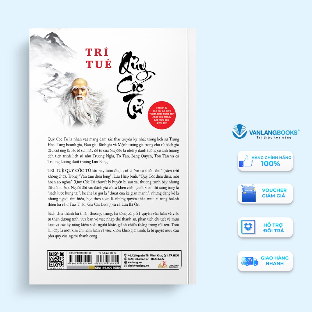 Mua tại TiktokTrí Tuệ Quỷ Cốc Tử GIỚI THIỆU SÁCH: Quỷ Cốc Tử là nhận vật mang đậm sắc thái truyền kỳ nhất trong lịch sử Trung Hoa. Tung hoành gia, Đạo gia, Binh gia và Mệnh tướng gia trong chư tử bách gia đều coi ông là bậc tổ sư, mấy đệ tử của ông đều là những danh tướng có ảnh hưởng đến tiến trình lịch sử như Trương Nghi, Tô Tần, Bàng Quyên, Tôn Tẫn và cả Trương Lương dưới trướng Lưu Bang. Trí tuệ Quỷ Cốc Tử lâu nay luôn được coi là “vô tự thiên thư” (sách trời không chữ). Trong “Văn tâm điêu long”, Lưu Hiệp bình: “Quỷ Cốc diếu diếu, mỗi hoàn áo nghĩa” (Qủy Cốc Tử thuyết lý huyền bí sâu xa, thường trình bày những điều ảo diệu). Người đời sau đánh giá có cả khen chê, người khen thì xưng tụng là “sách lược hùng tài”, kẻ chê lại gọi là “thuật của kẻ gian manh”, nhưng đáng kể là những người tìm hiểu, học theo toàn là những quyền thần mưu sĩ tung hoành thiên hạ như Tào Tháo, Gia Cát Lượng và cả Lưu Bá Ôn. Sách Trí Tuệ Quỷ Cốc Tử chia thành ba thiên thượng, trung, hạ tổng cộng 21 quyển vừa luận về việc tu thân dưỡng tính, vừa bàn về việc nhập thế thành sự, phân tích chi tiết về mưu lược và các kỹ năng kiểm soát người khác, giành chiến thắng trong rối ren. Tóm lại, đây là một kim chỉ nam luận về việc khôn khéo giữ mình, là bí quyết mưu cầu phú quý của người thành công.