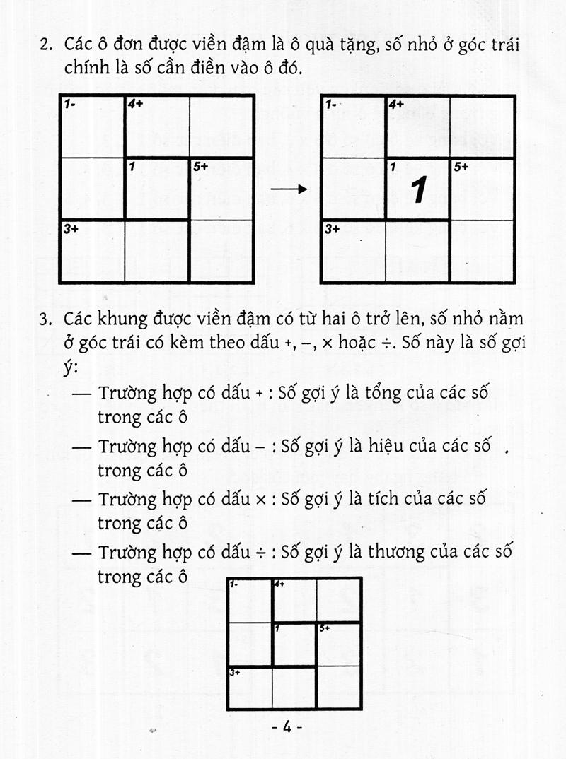 Ngoài ra sách còn có phần hướng dẫn cách chơi và một vài mẹo nhỏ giúp người chơi có thể giải quyết các ô số một cách dễ dàng hơn.