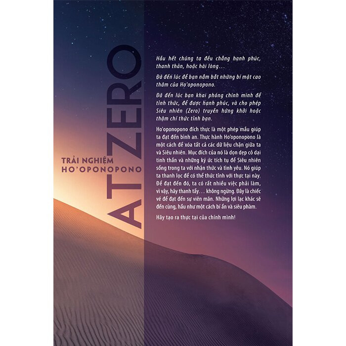 Nếu Không giới hạn (Zero Limit) là sự bắt đầu của phương pháp Ho’oponopono thì Trở Về Không (At Zero) chính là sự nối tiếp thông điệp với những phương thức nâng cao bí truyền, mở đường cho phép mầu xảy đến trong thực tại.