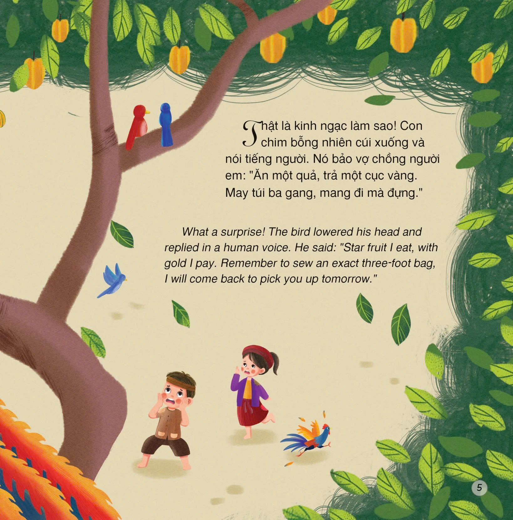 5 câu chuyện quen thuộc được lưu truyền từ thế hệ này sang thế hệ khác như Tấm Cám - Thánh Gióng - Sơn tinh Thủy Tinh - Cóc kiện trời - Cây khế, dưới bàn tay tài hoa của các họa sĩ, thiết kế đã hiện lên vô cùng sống động, rực rỡ. Nội dung mỗi câu truyện đều được vẽ minh họa lại toàn bộ, vừa mang nét hiện đại, lại vừa thể hiện được cái hồn riêng của truyện cổ tích truyện cổ tích Việt Nam.
