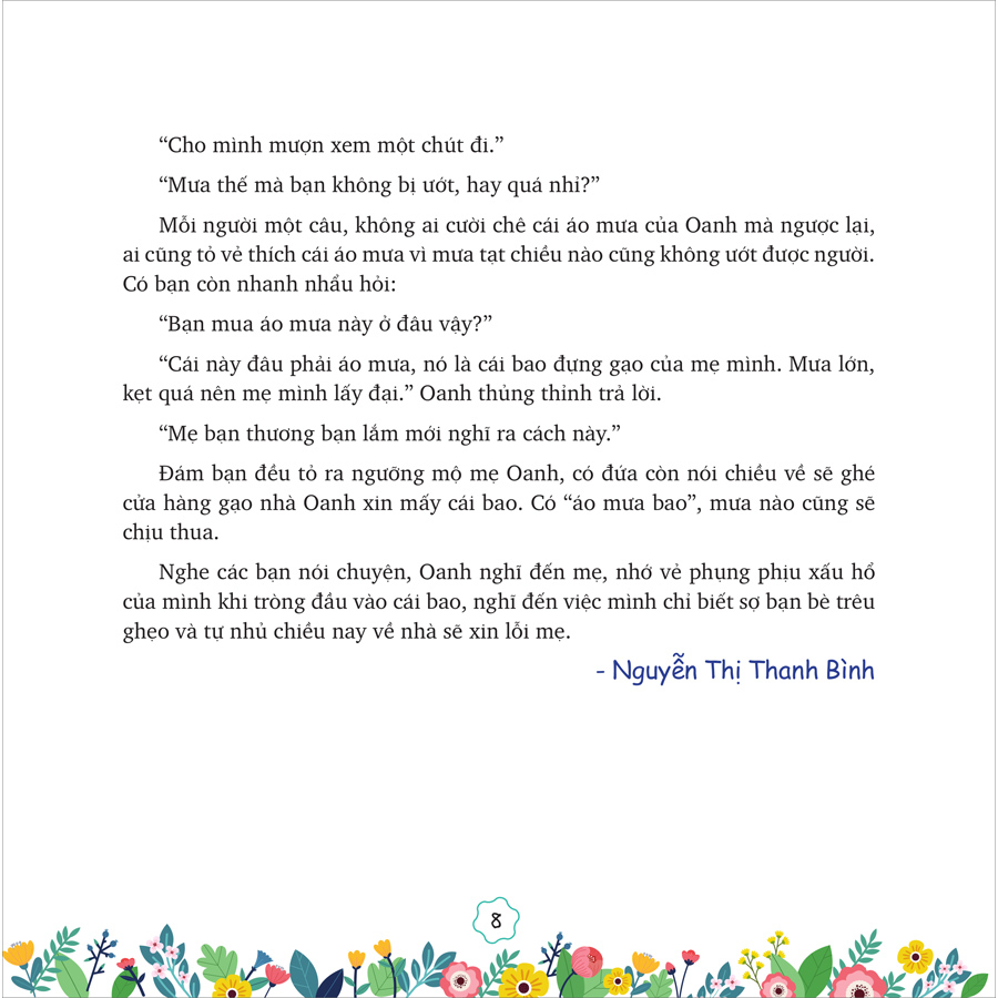 Những điều tốt đẹp và cả những chuyện không vui sẽ xảy đến với những bạn nhỏ một cách đầy bất ngờ, thậm chí nhiều khi các em còn không hề biết rằng nó đang diễn ra. Như tựa đề của cuốn sách, các em nhỏ được ví như những bông hoa cần được tưới tắm bằng tình thương, niềm tin và tình yêu cuộc sống để mai này khi lớn lên, tình thương, niềm tin và tình yêu cuộc sống đó lại tiếp tục được lan tỏa.