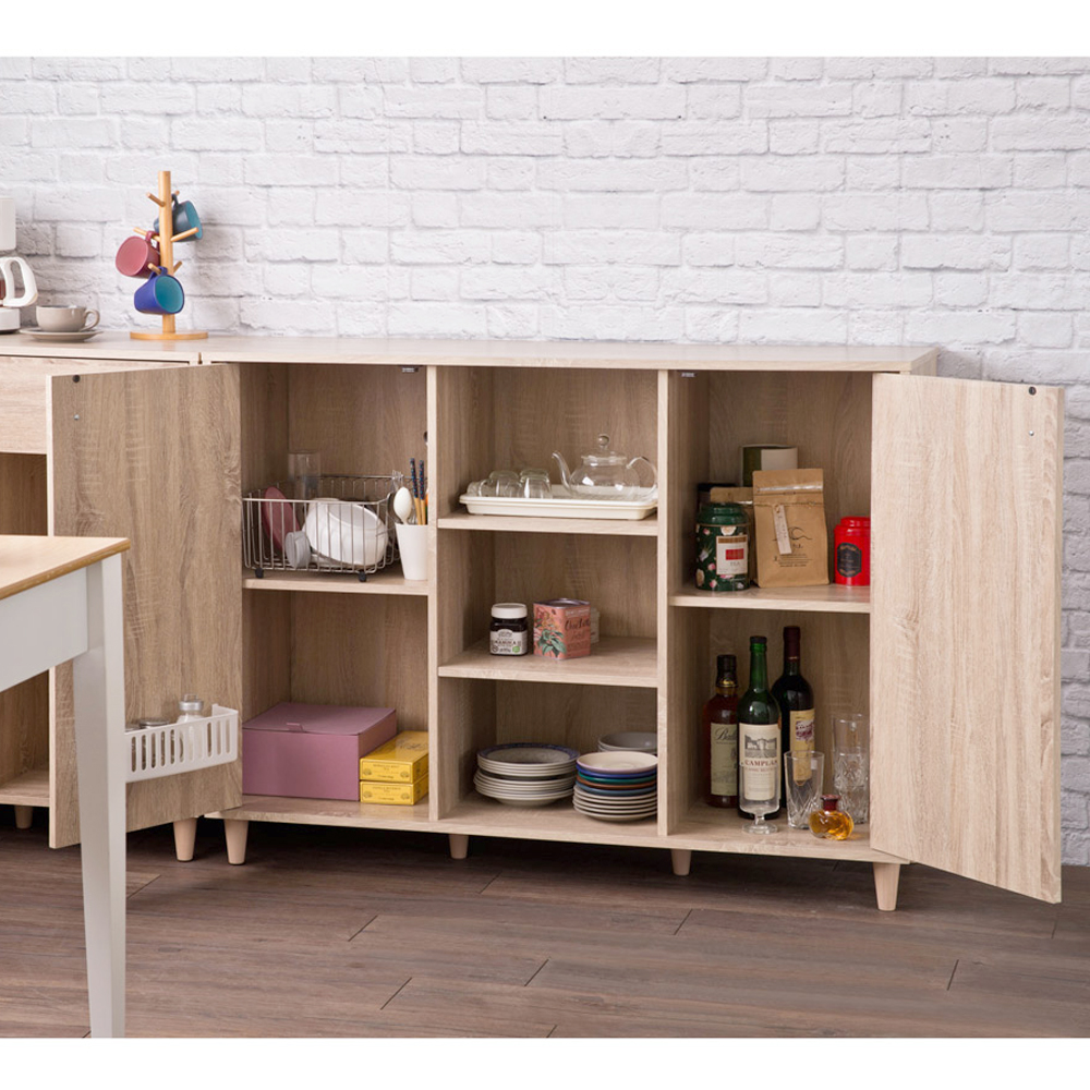 Tủ đựng đồ, tủ bếp, tủ chén dĩa đa năng Model GT2115 làm từ gỗ công nghiệp MDF lõi xanh chống ẩm phủ Melamine cao cấp, kết hợp với chân gỗ tự nhiên cứng cáp, mang một nét thiết kế hài hòa và phong cách đơn giản và hiện đại đảm bảo giữ độ bền màu và ít bám bụi. Hai bên là 2 cánh tủ đối xứng nhiều ngăn, tạo nên một không gian lưu trữ khá lớn, giúp bạn tùy ý sắp xếp các vật dụng nhà bếp một cách khoa học và ngăn nắp, phù hợp với những căn bếp của gia đình Việt. Kết cấu sản phẩm đảm bảo vững chắc, tải trọng thiết kế lên tới hơn 60 kg. Đây chắc chắn sẽ là một người bạn hỗ trợ tuyệt vời cho không gian phòng bếp hay bất cứ chỗ nào trong ngôi nhà bạn. Sản phẩm GT2115 được phân phối chính hãng từ thương hiệu nội thất uy tín ECOFURNIX.