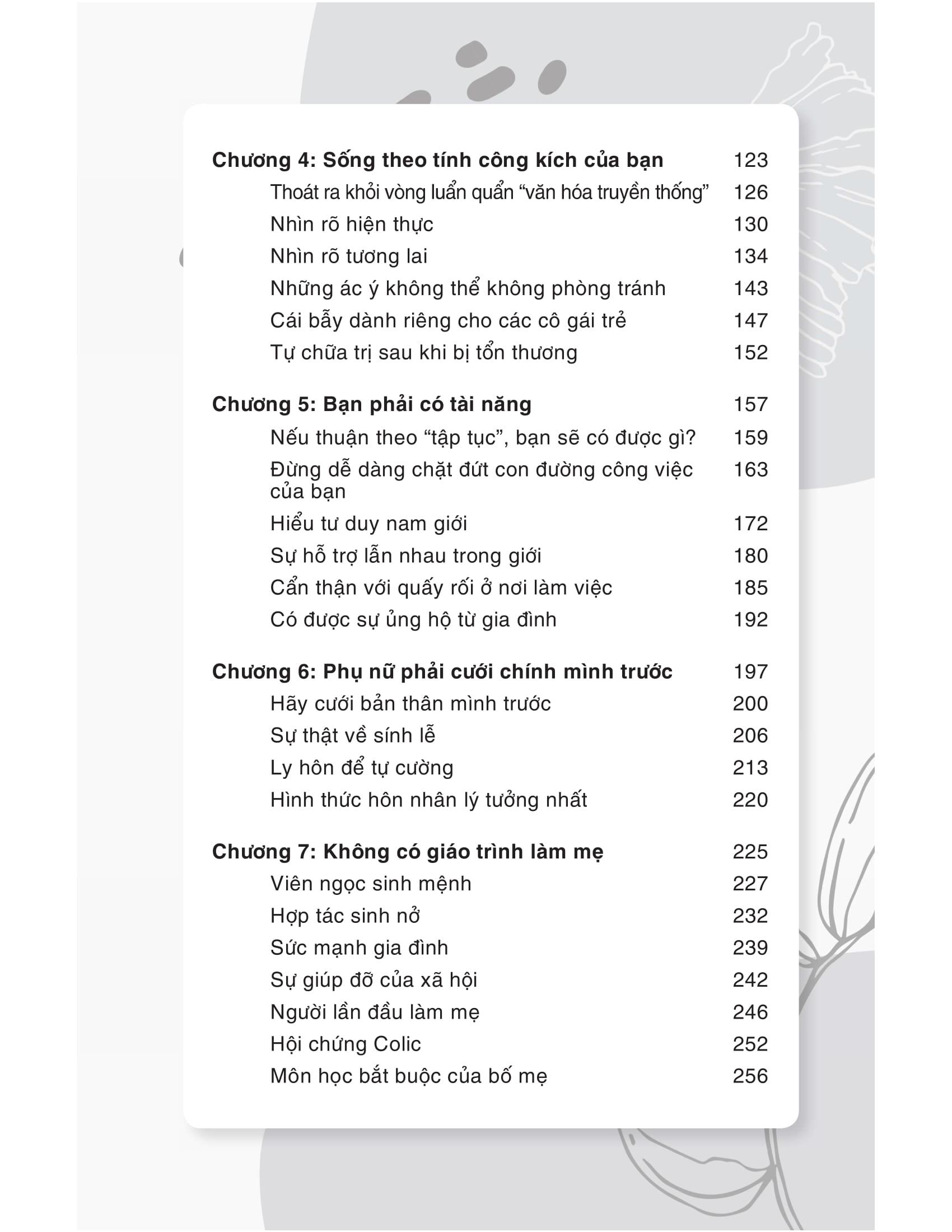 Trần Lan không chỉ đơn thuần kể về nữ quyền nên làm thế nào để đánh bại nam quyền, cô đứng trên lập trường của nữ giới, nhìn từ góc độ và quyền lợi của nữ giới, lấy trục thời gian là một đời của phụ nữ để thủ thỉ với bạn cách đối phó với những vấn đề có thể sẽ gặp phải trong cuộc đời của một người phụ nữ. Nội dung sâu sắc, lời lẽ đơn giản, dễ hiểu, người đọc sẽ có cảm giác như chính mình được trải nghiệm và tỉnh ngộ.