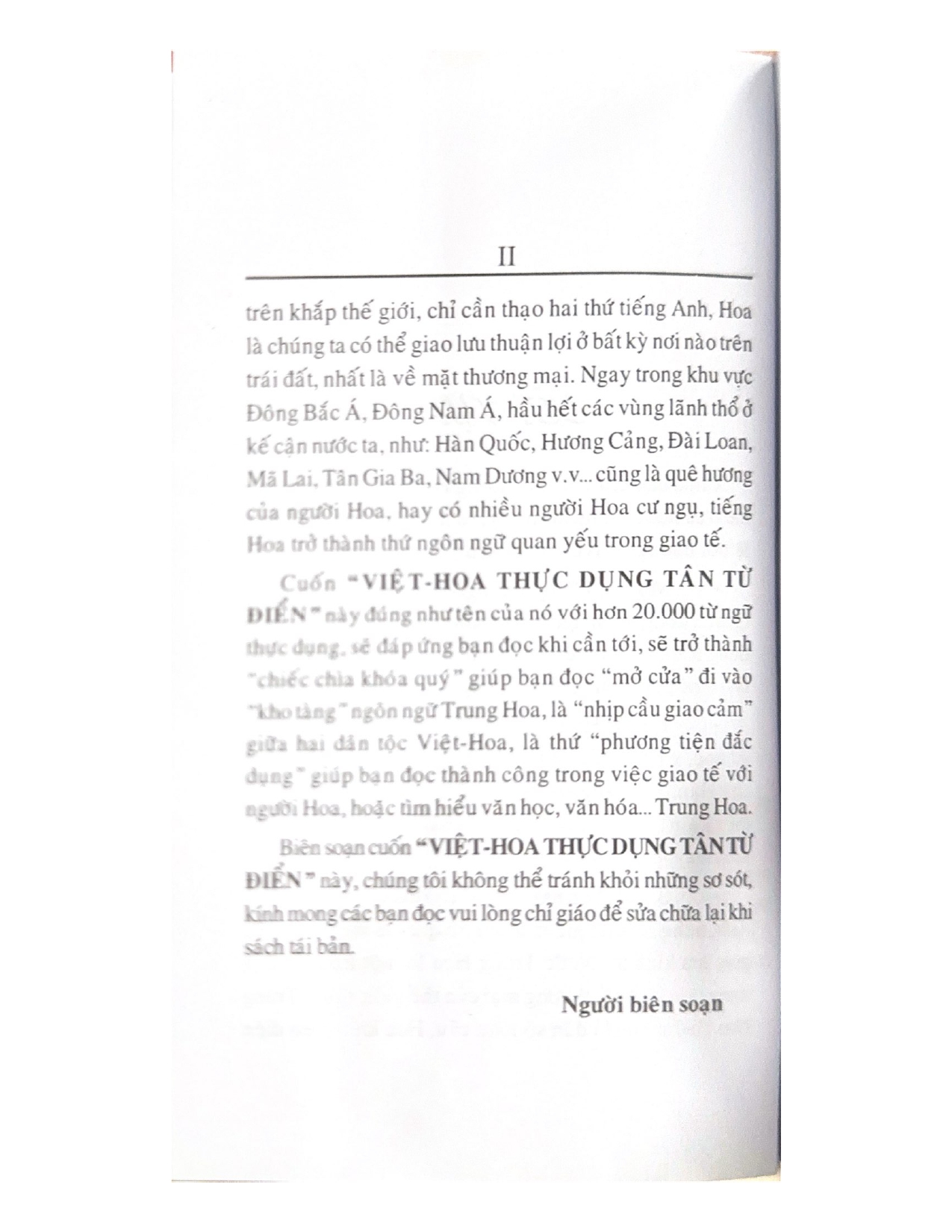 "Đây là ấn bản Từ điển Việt Hoa bỏ túi mới nhất được biên soạn công phu và chi tiết. Lần tái bản này, sách được cập nhật nhiều từ vựng thông dụng hiện đại, mang đến cho độc giả phiên bản hoàn chỉnh, đầy đủ nhất.
