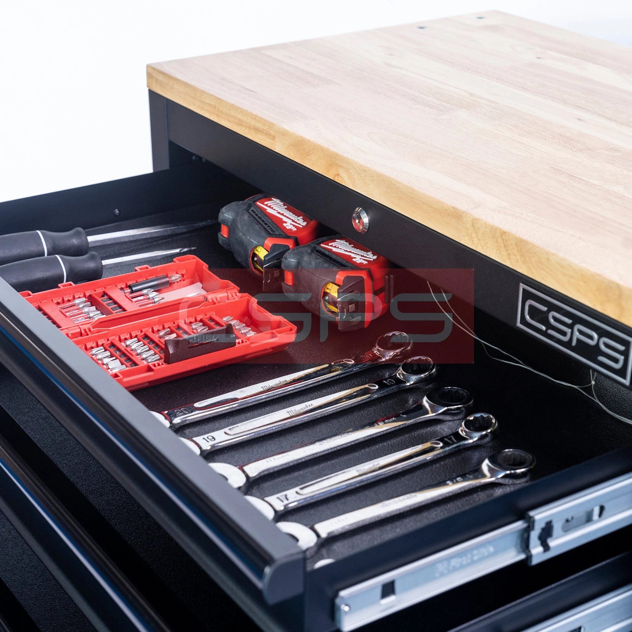 Tủ dụng cụ 7 ngăn kéo có mặt ván gỗ kèm ray đóng êm CSPS THÔNG SỐ KỸ THUẬT 1) THÔNG SỐ CHUNG Kích thước sản phẩm: 76,5 cm W x 46,2 cm D x
