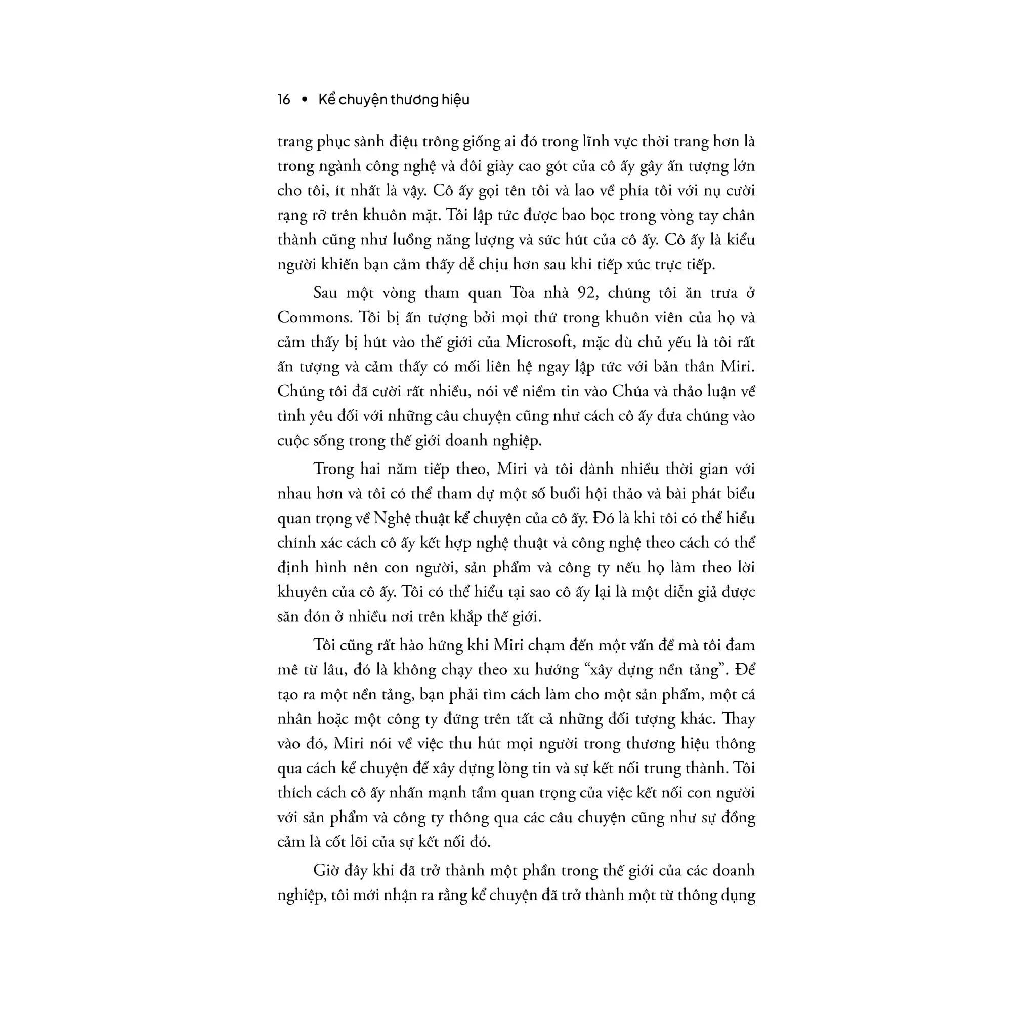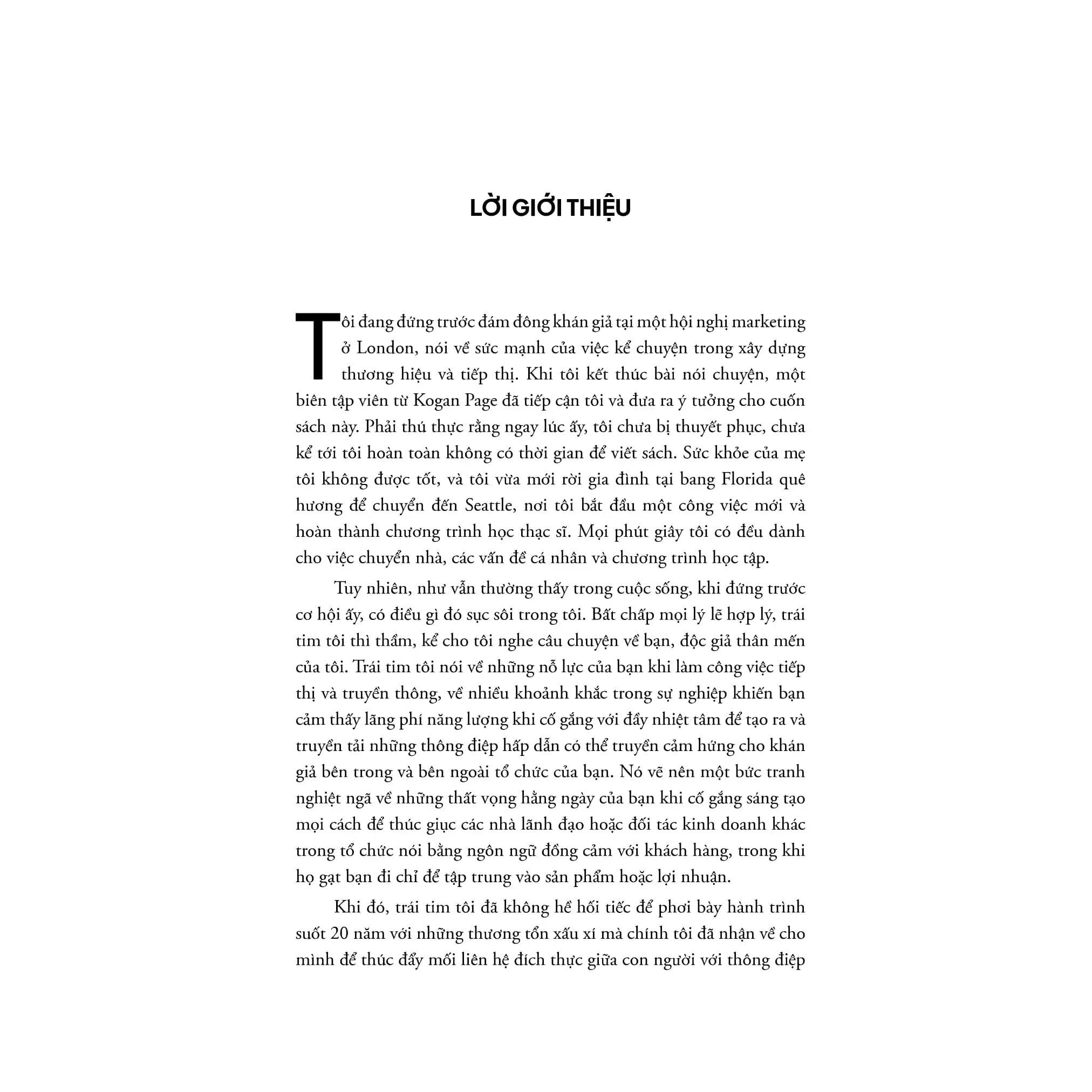 Brand Storytelling của Miri Rodriguez là một cuốn sách hướng dẫn toàn diện về nghệ thuật kể chuyện trong xây dựng thương hiệu. Với phương pháp thực hành chi tiết, cuốn sách cung cấp cho người đọc các công cụ và kỹ thuật để tạo ra những câu chuyện thương hiệu chân thực và đồng cảm, giúp kết nối mạnh mẽ với khách hàng. Miri Rodriguez áp dụng tư duy thiết kế và nguyên tắc UX để hướng dẫn cách xác định sứ mệnh thương hiệu, thiết kế nguyên mẫu câu chuyện và đo lường hiệu quả, nhấn mạnh tầm quan trọng của sự đồng cảm và tính nhân văn trong quá trình này. Cuốn sách là một nguồn tài nguyên quý giá cho bất kỳ ai muốn nâng cao kỹ năng kể chuyện và xây dựng một thương hiệu gắn kết và bền vững.